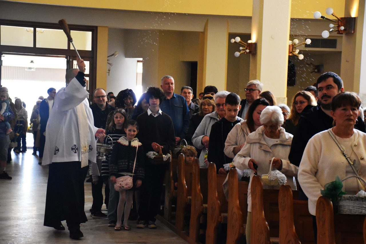Zgodnie z tradycją Wielkiej Soboty, w naszym kościele parafialnym, w godzinach 9:00 – 14:00, co 20 minut miało miejsce błogosławieństwo pokarmów na stół wielkanocny: chleba – na pamiątkę tego, którym Jezus nakarmił tłumy na pustyni; mięsa – na pamiątkę baranka paschalnego, którego spożywał Jezus podczas uczty paschalnej z uczniami w Wieczerniku oraz jajek, które symbolizują nowe życie.