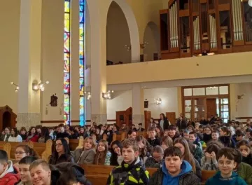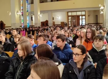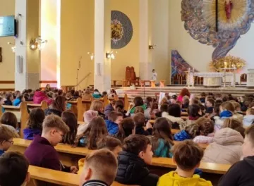 W dniach 20 – 21.03.2025 r., uczniowie Szkoły Podstawowej nr 4 i 9 zgromadzili się w naszej parafialnej świątyni, aby przeżywać swoje spotkanie z Bogiem, podczas wielkopostnych rekolekcji, które poprowadził ks. Michał Kozak – Rektor Kaplicy św. Maksymiliana Kolbego w Sanoku i katecheta I LO w Sanoku. Zgromadzeni na Eucharystii i nabożeństwie Drogi Krzyżowej uczniowie, mogli wysłuchać konferencji ks. Rekolekcjonisty, który zachęcał, aby nikt nie wstydził się dziękować za dary, które każdego dnia otrzymuje od Stwórcy. Ks. Michał zaprosił nas także, abyśmy potrafili choć na chwilę oderwać swój wzrok od świata wirtualnego i zachwycić się spotkaniem z Bogiem w drugim człowieku.