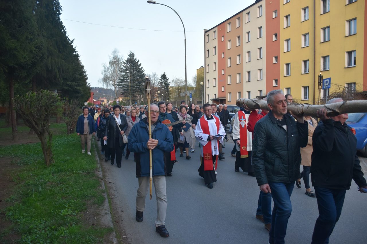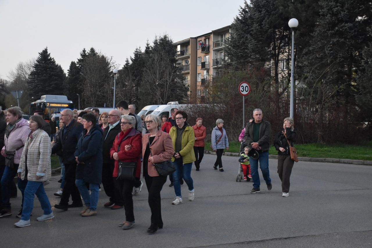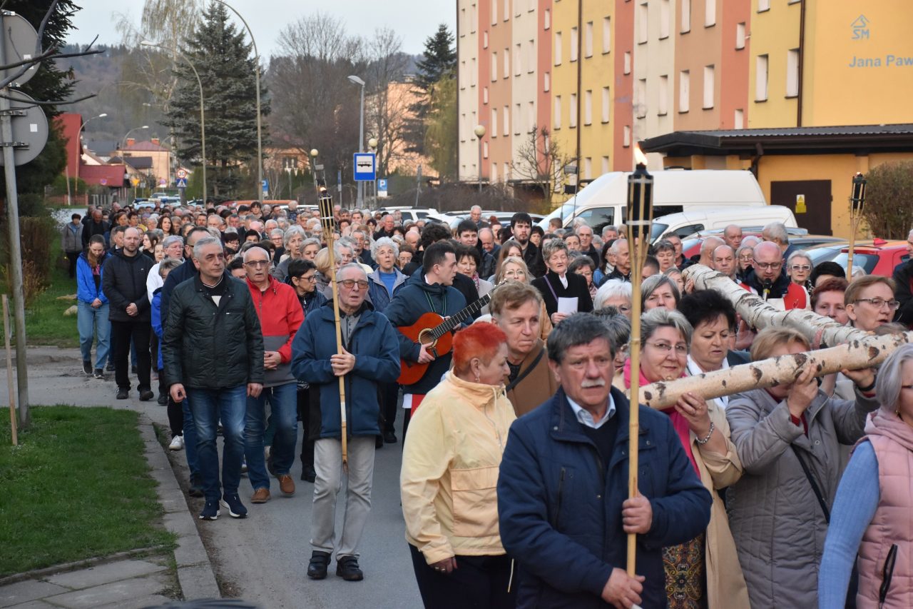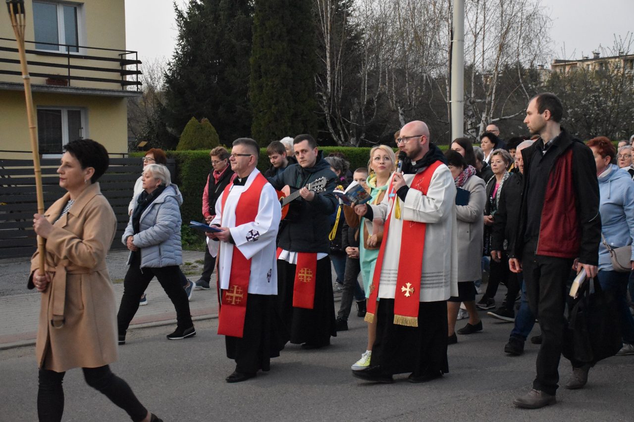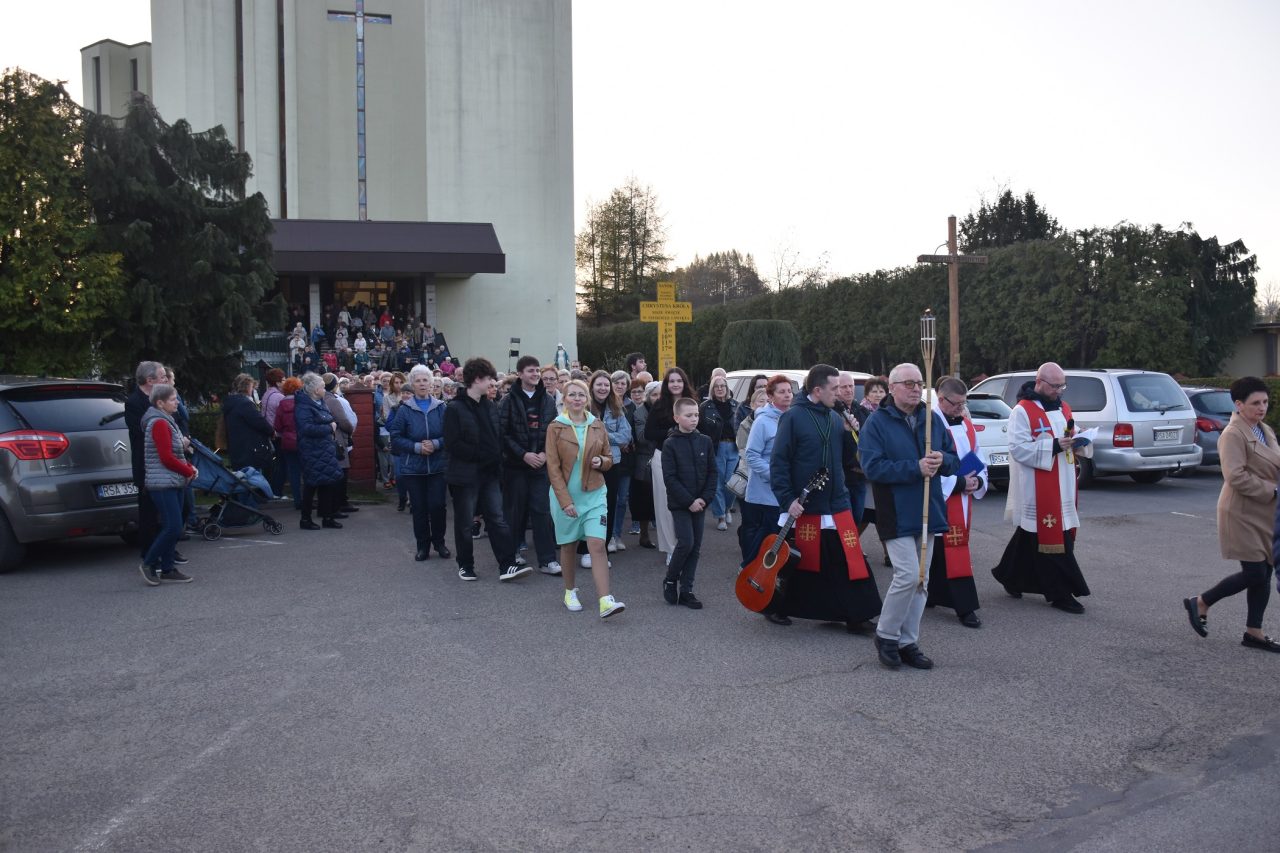 Następnie, po zakończonej Eucharystii, udaliśmy się ulicami naszej parafii z nabożeństwem Drogi Krzyżowej, na wzgórze położne na osiedlu Kiczury. Idąc za cierpiącym Sługą Jahwe, próbowaliśmy dotknąć prawdy, że tylko stawiając swoje stopy w ślady Chrystusa Pana, możemy zwycięsko przejść drogę swego życia, na końcu której czeka nas chwała zmartwychwstania.
