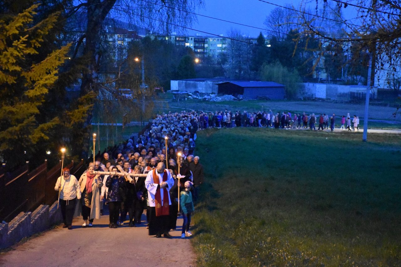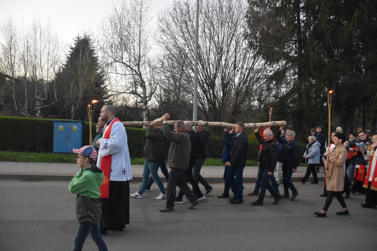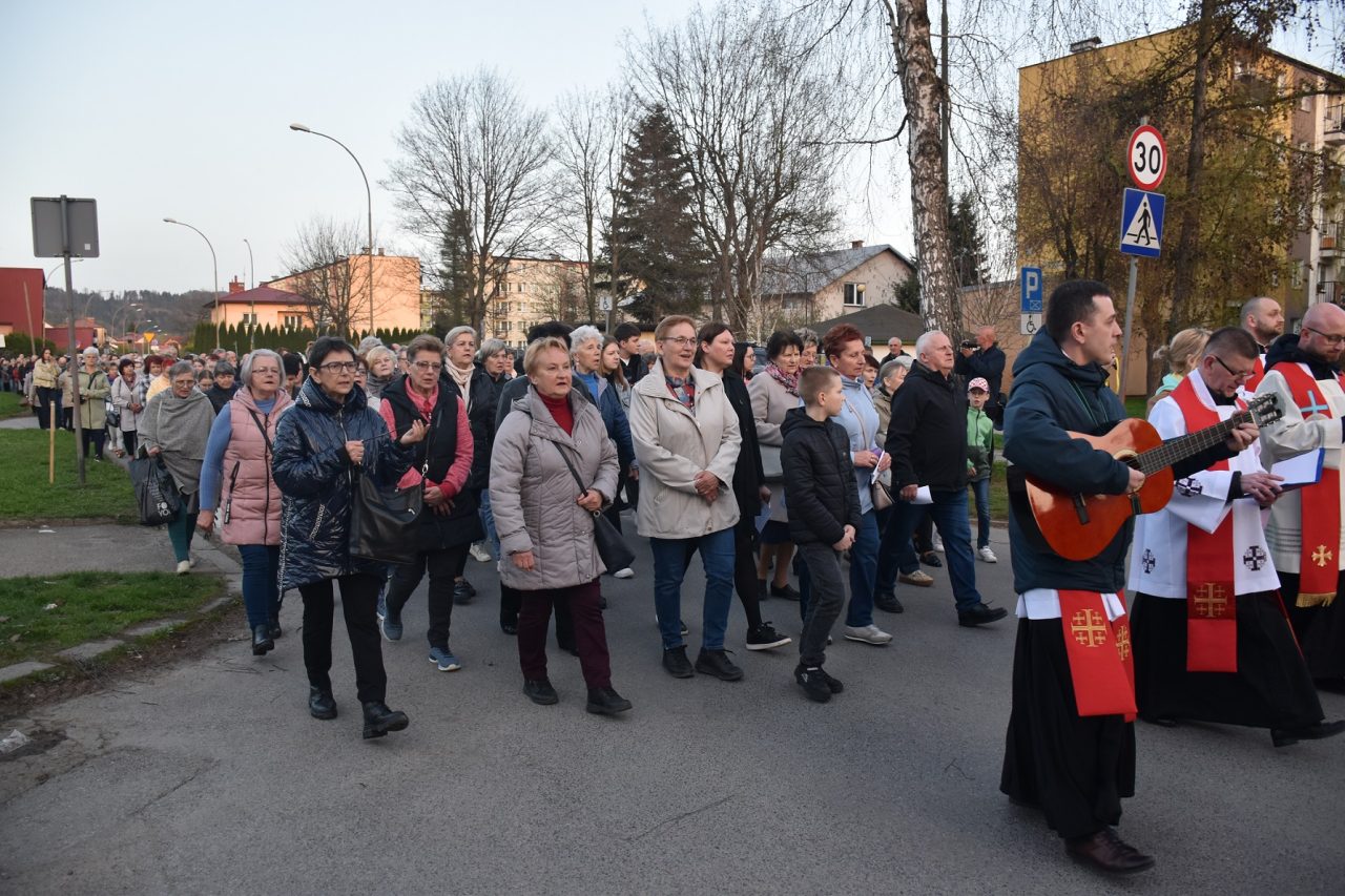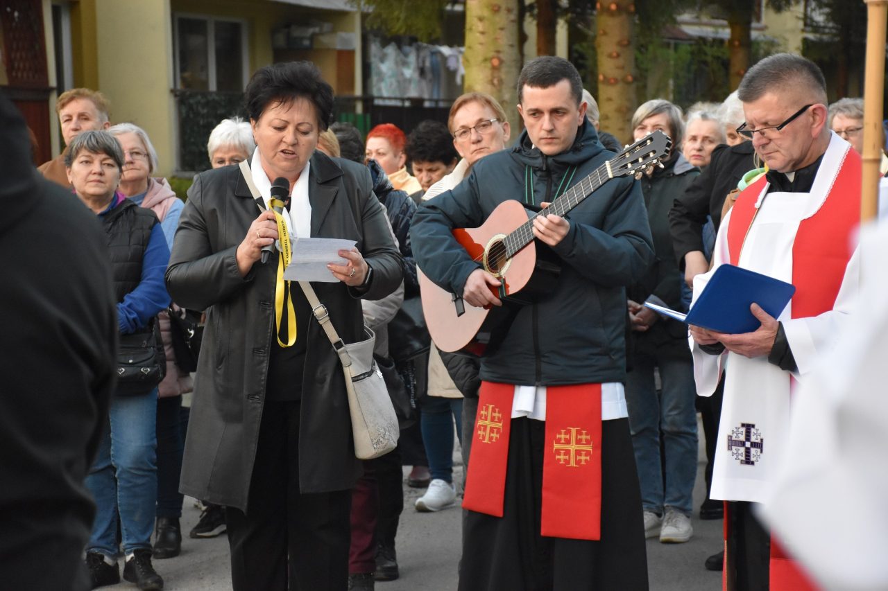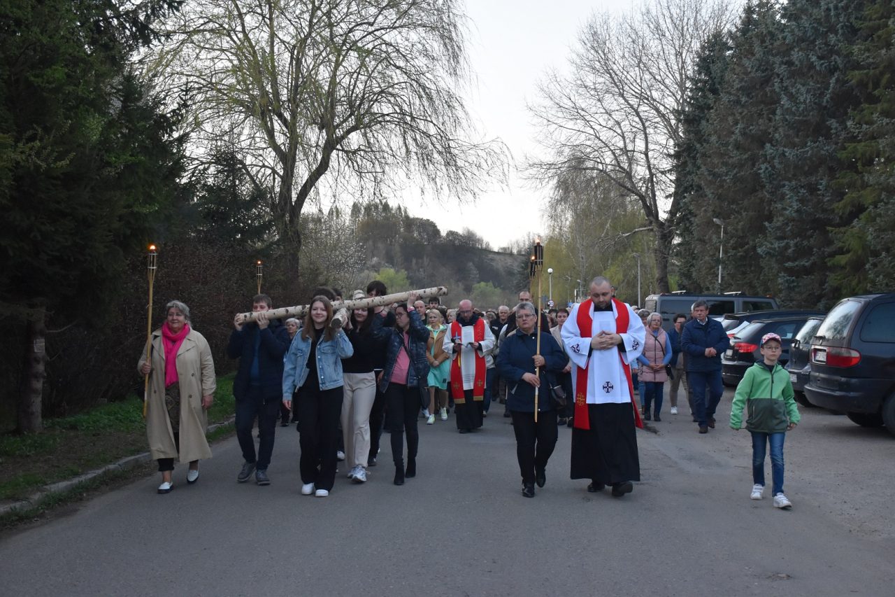 Następnie, po zakończonej Eucharystii, udaliśmy się ulicami naszej parafii z nabożeństwem Drogi Krzyżowej, na wzgórze położne na osiedlu Kiczury. Idąc za cierpiącym Sługą Jahwe, próbowaliśmy dotknąć prawdy, że tylko stawiając swoje stopy w ślady Chrystusa Pana, możemy zwycięsko przejść drogę swego życia, na końcu której czeka nas chwała zmartwychwstania.