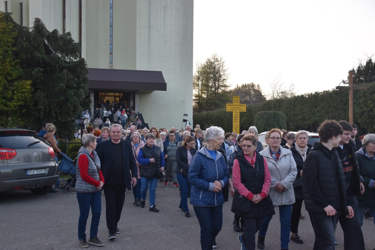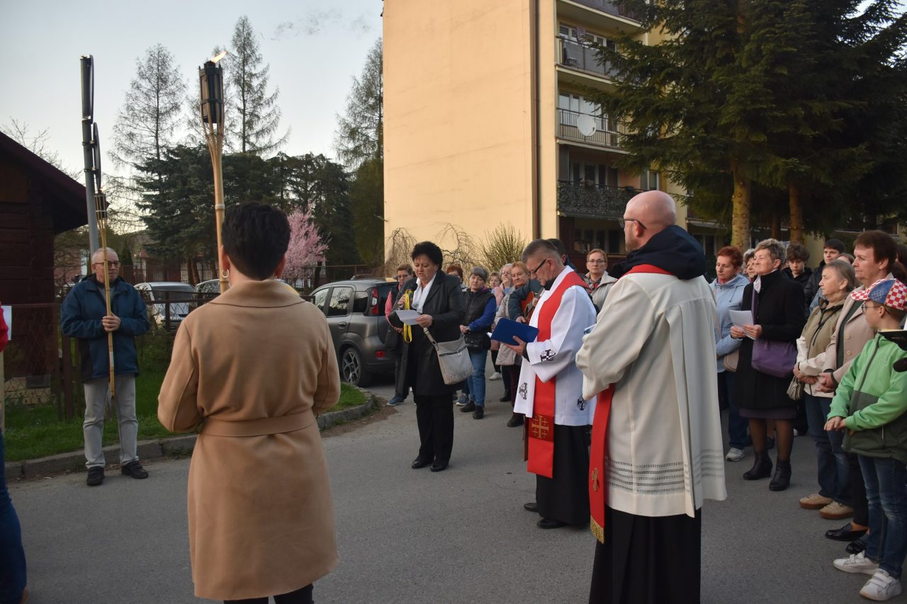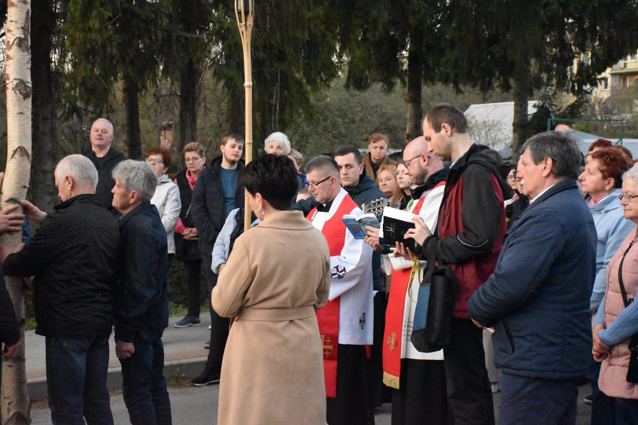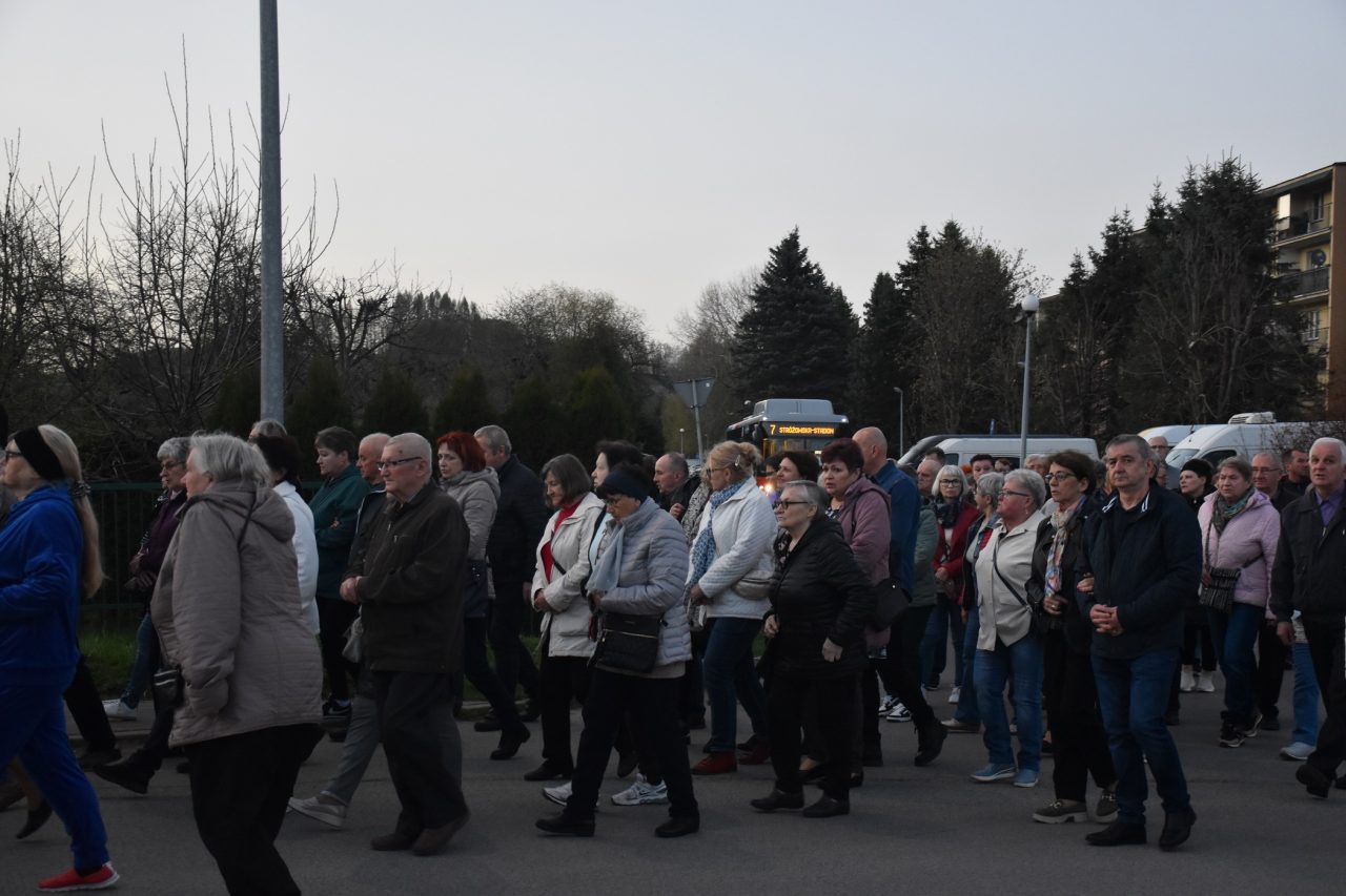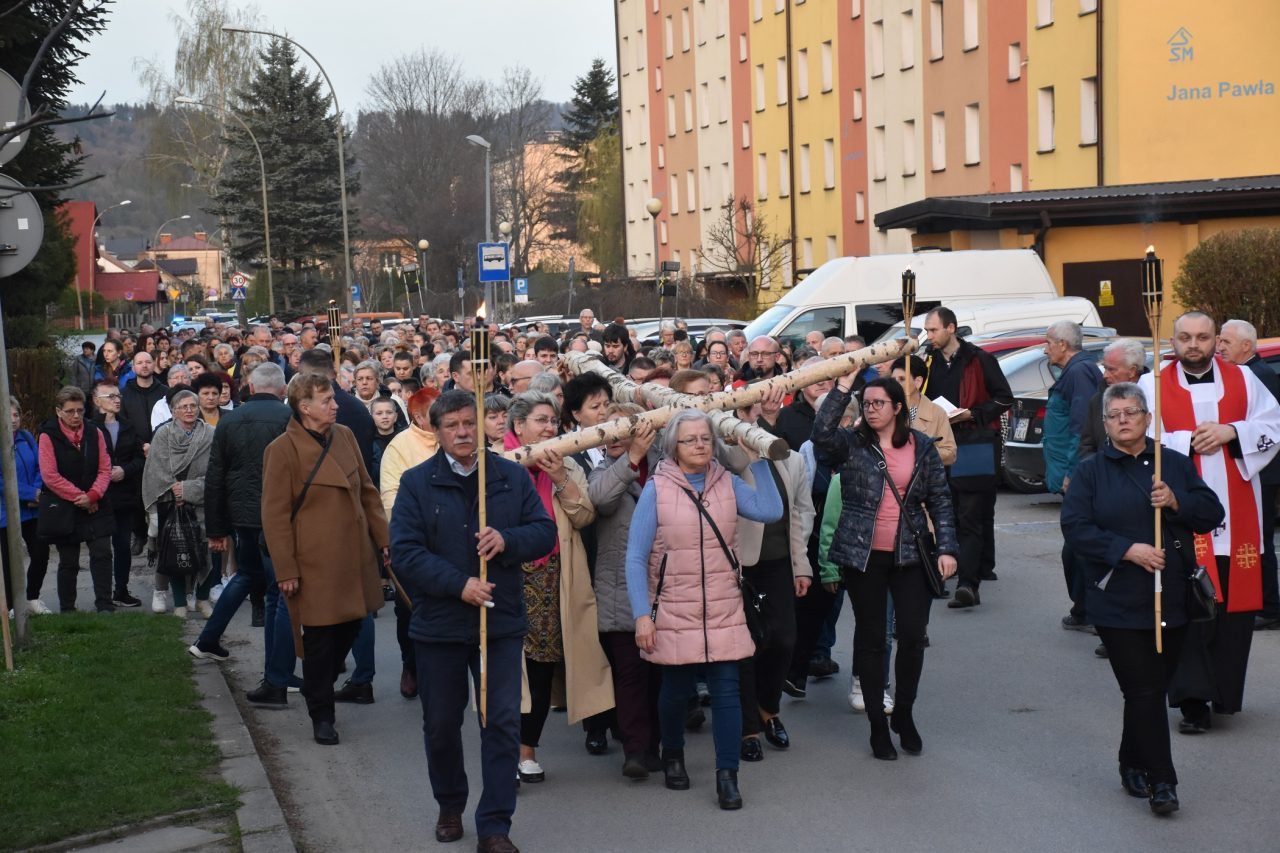 Następnie, po zakończonej Eucharystii, udaliśmy się ulicami naszej parafii z nabożeństwem Drogi Krzyżowej, na wzgórze położne na osiedlu Kiczury. Idąc za cierpiącym Sługą Jahwe, próbowaliśmy dotknąć prawdy, że tylko stawiając swoje stopy w ślady Chrystusa Pana, możemy zwycięsko przejść drogę swego życia, na końcu której czeka nas chwała zmartwychwstania.