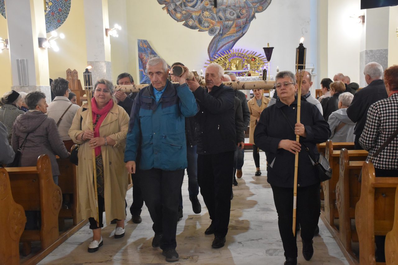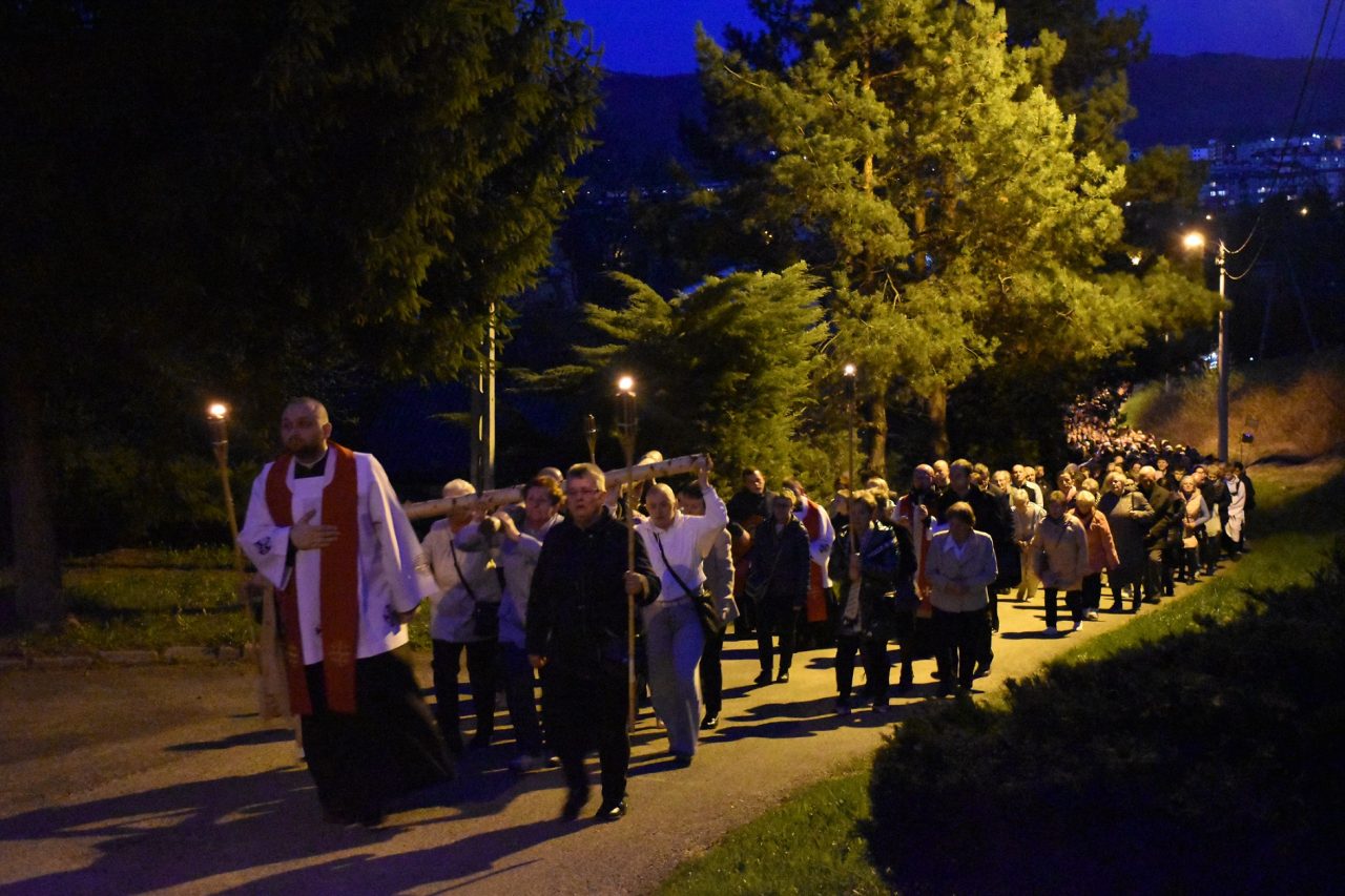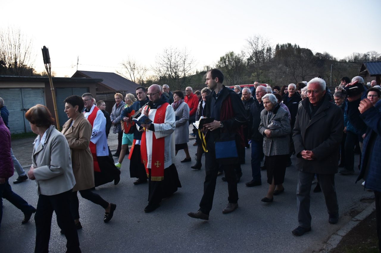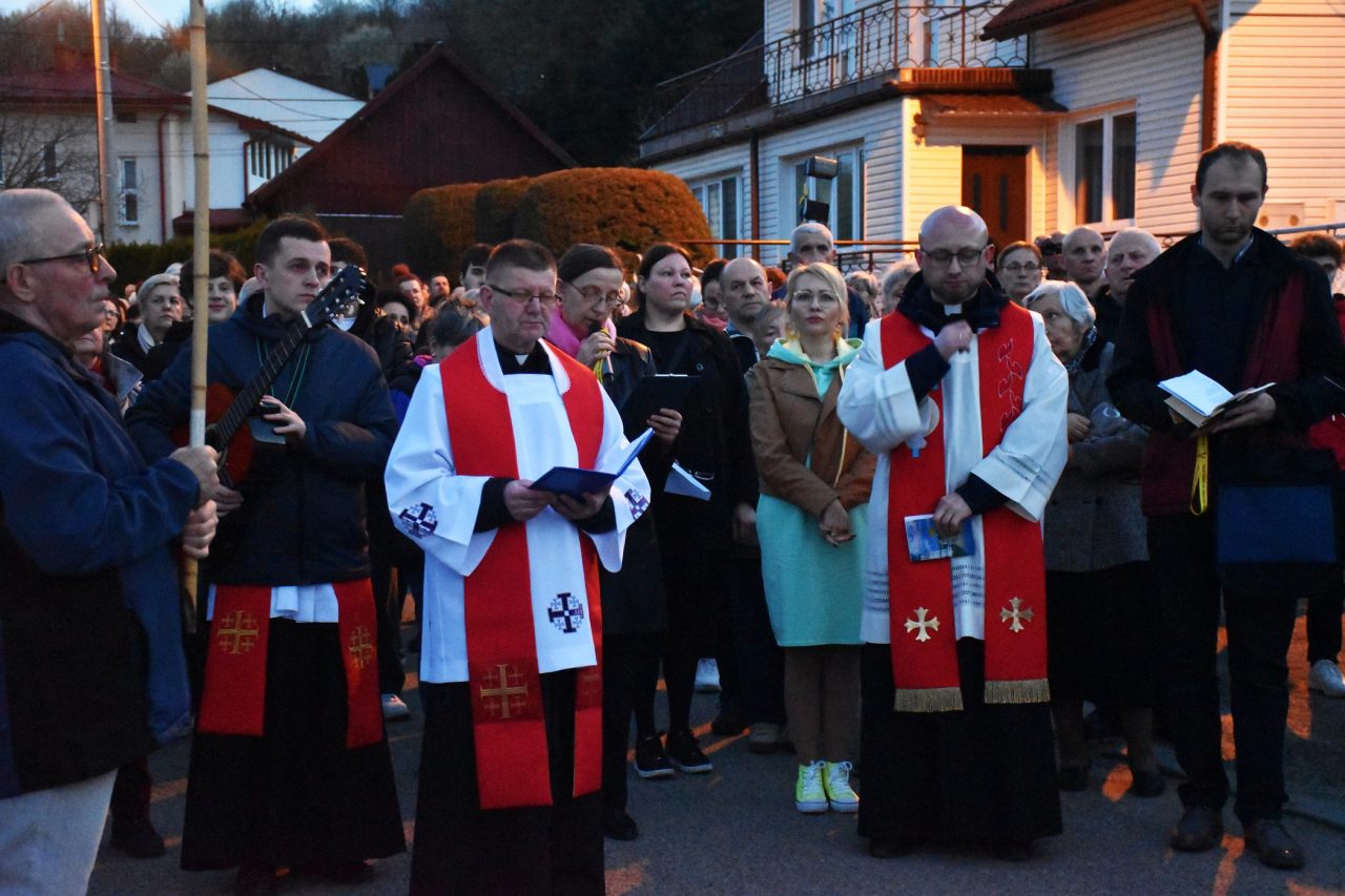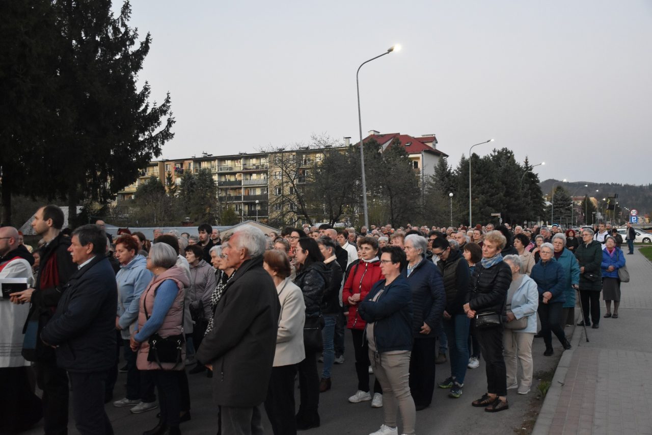 Następnie, po zakończonej Eucharystii, udaliśmy się ulicami naszej parafii z nabożeństwem Drogi Krzyżowej, na wzgórze położne na osiedlu Kiczury. Idąc za cierpiącym Sługą Jahwe, próbowaliśmy dotknąć prawdy, że tylko stawiając swoje stopy w ślady Chrystusa Pana, możemy zwycięsko przejść drogę swego życia, na końcu której czeka nas chwała zmartwychwstania.