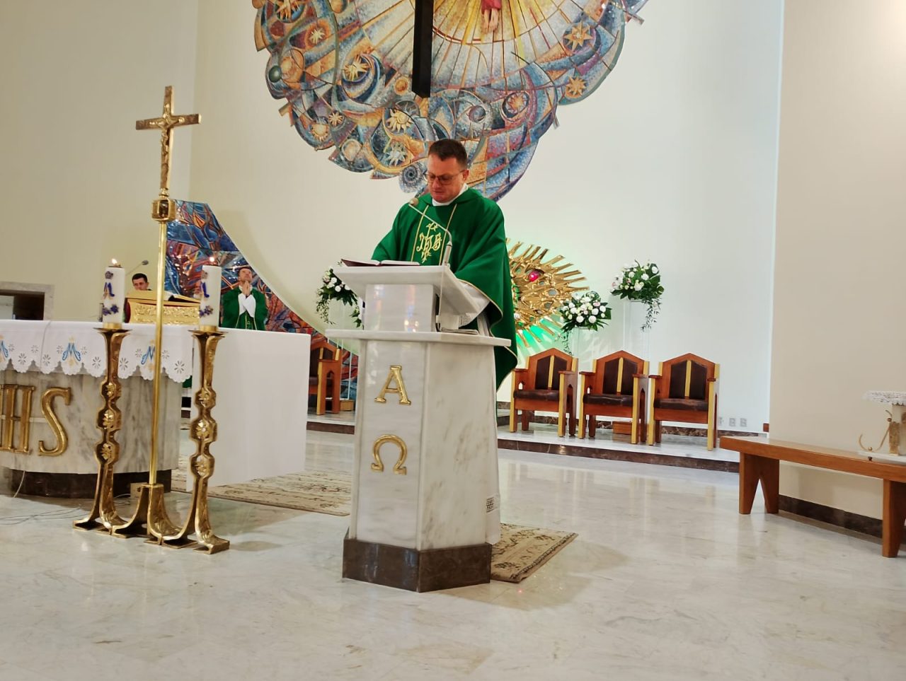 Na początku Eucharystii, słowa powitania skierował do pielgrzymów ks. Proboszcz Zbigniew Góra, który zachęcił wszystkich, aby wpatrywali się w Maryję, która jest wzorem pielgrzyma niosącego nadzieję, tak bardzo potrzebną w dzisiejszych czasach. Homilię w tym dniu wygłosił ks. Krzysztof Szybiak, przewodnik grupy św. Kazimierza, który przytaczając liczne z życia przykłady, mobilizował swoich słuchaczy, aby na modlitwie przed Bogiem byli nieustępliwymi i wytrwałymi.