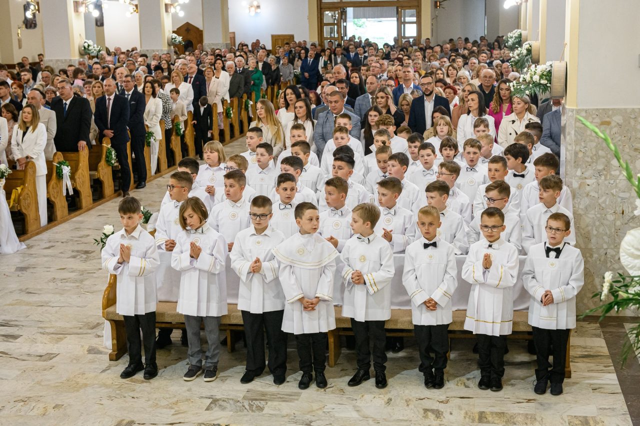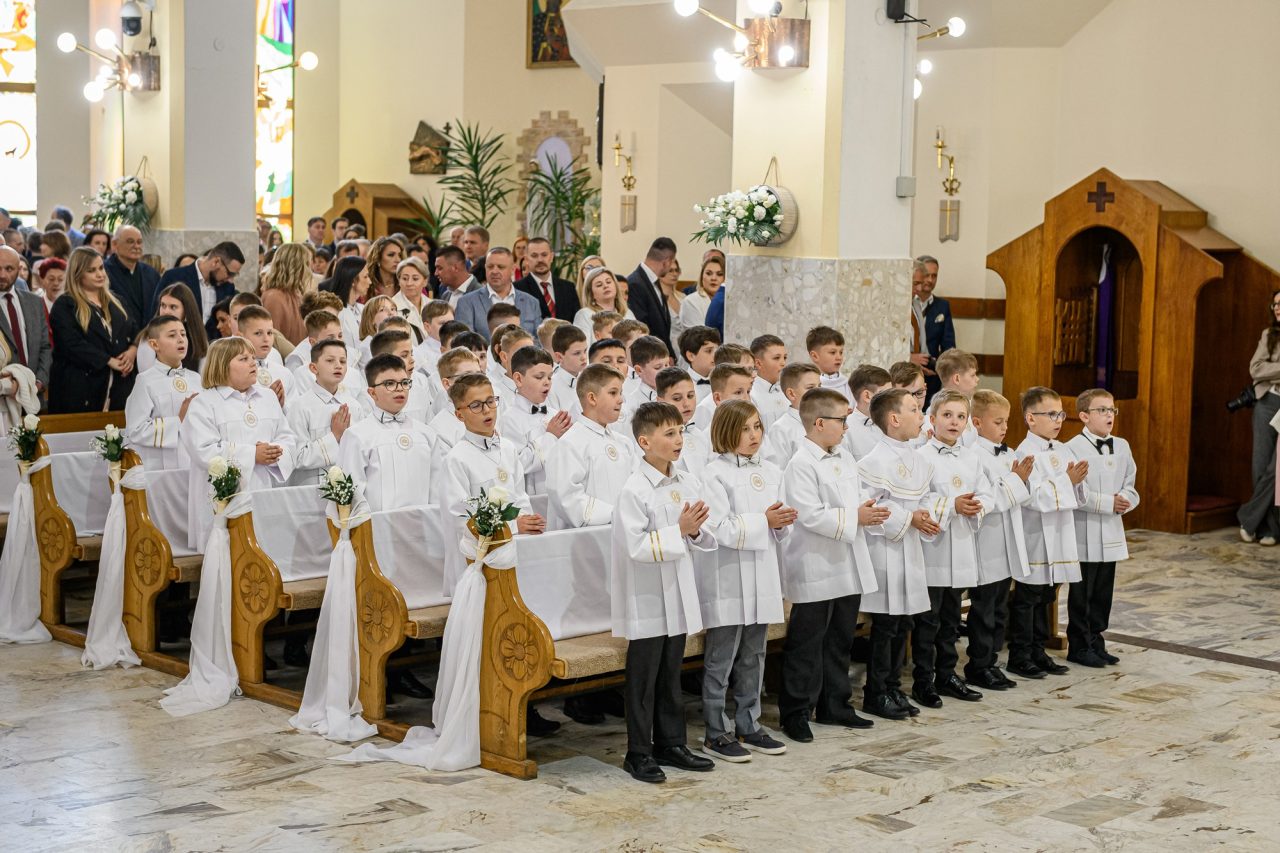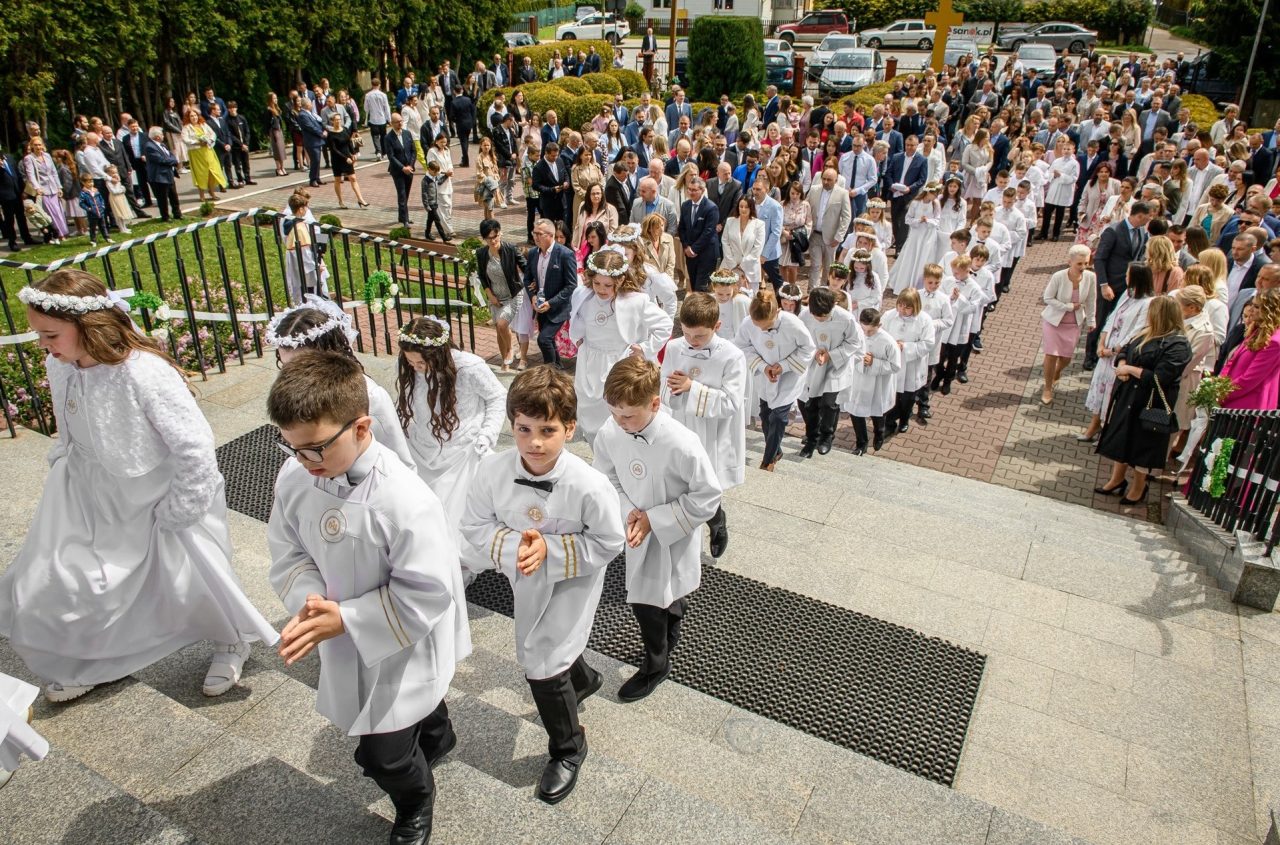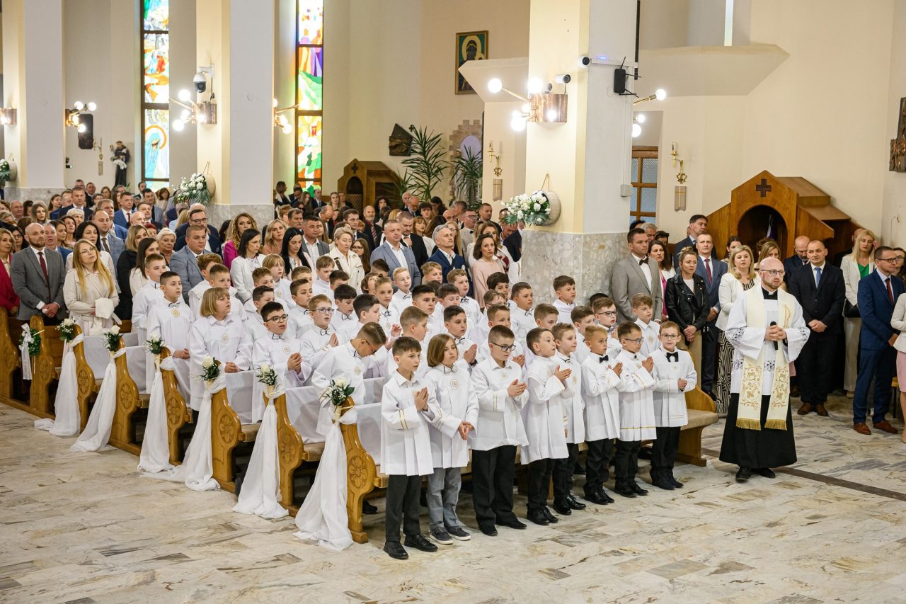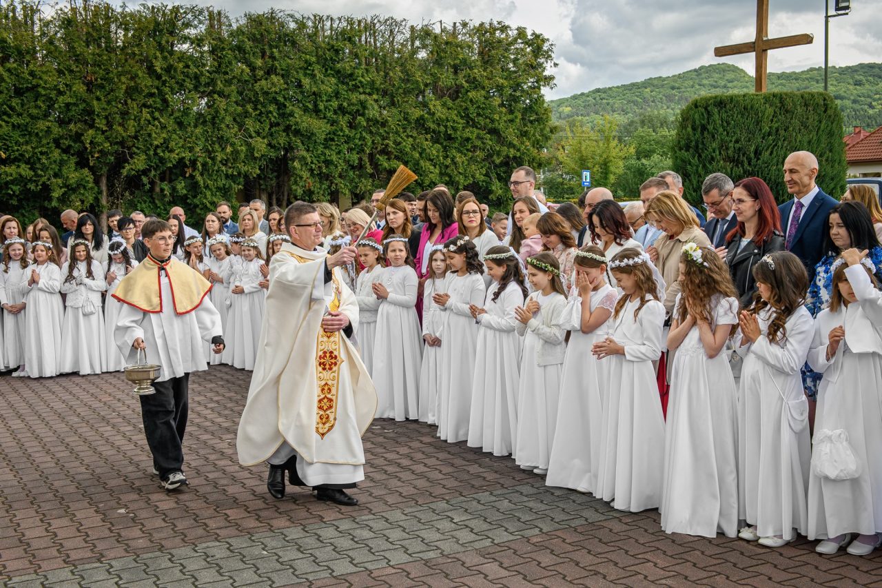 W tym wyjątkowym dniu, na placu przed kościołem ksiądz Proboszcz Zbigniew Góra w asyście ks. Pawła Serwańskiego i Ks. Karola Lenia, odpowiedzialnych za przygotowywanie dzieci do tego wydarzenia, witał  i błogosławił dzieci. Następnie błogosławieństwa udzielili rodzice.