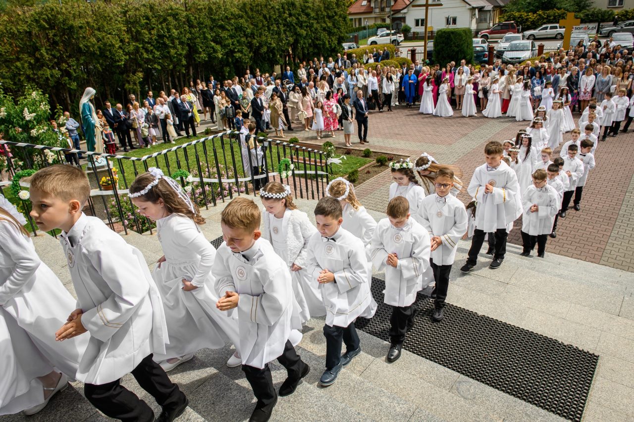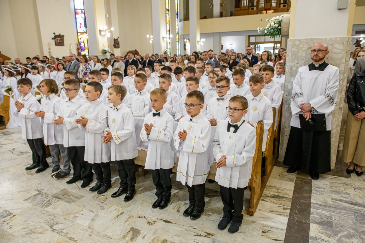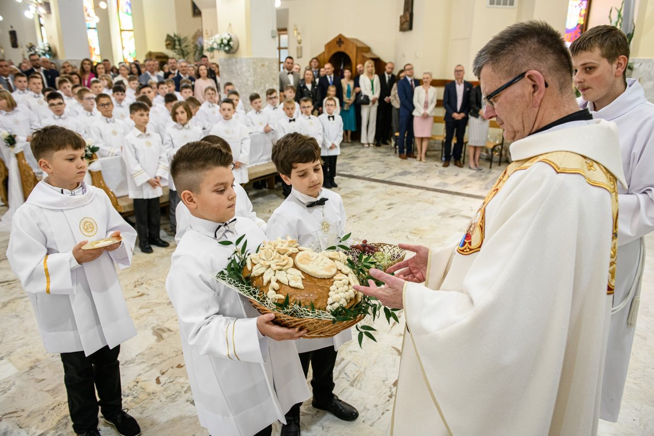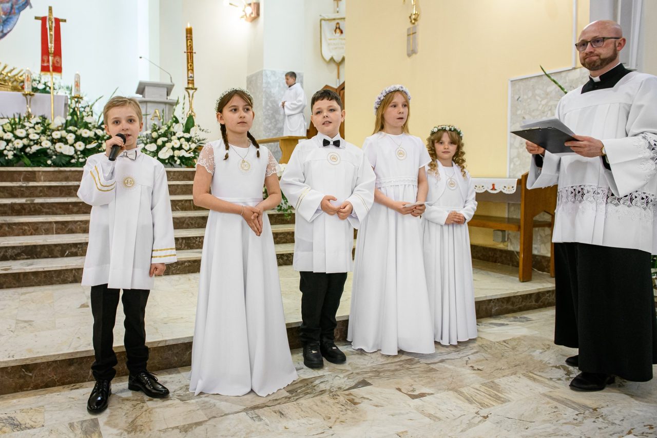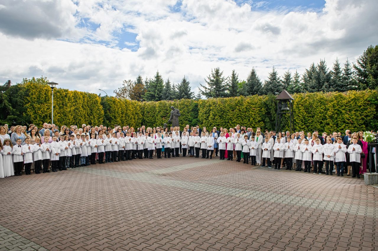 W tym wyjątkowym dniu, na placu przed kościołem ksiądz Proboszcz Zbigniew Góra w asyście ks. Pawła Serwańskiego i Ks. Karola Lenia, odpowiedzialnych za przygotowywanie dzieci do tego wydarzenia, witał  i błogosławił dzieci. Następnie błogosławieństwa udzielili rodzice.