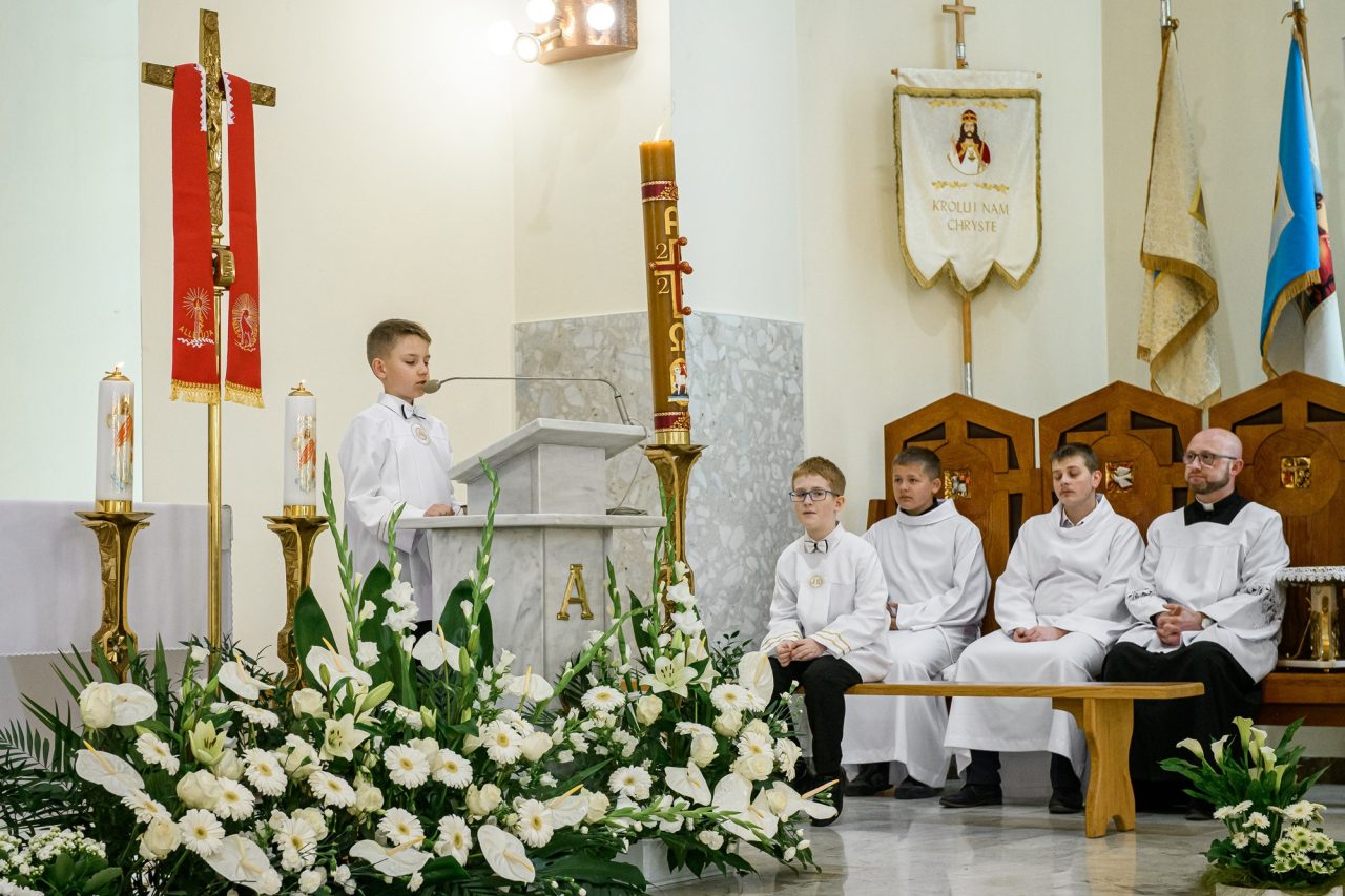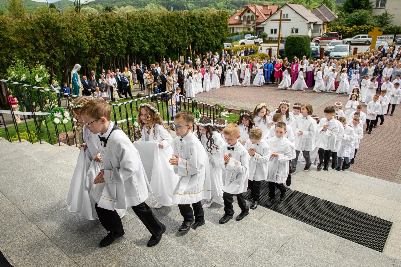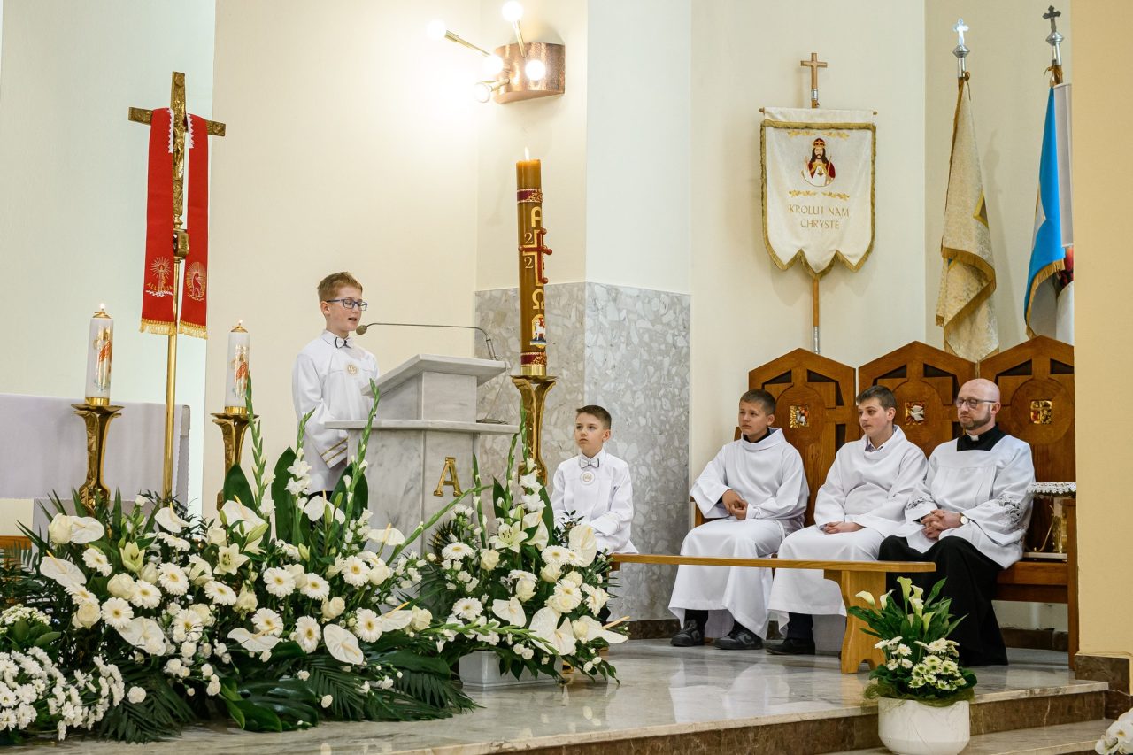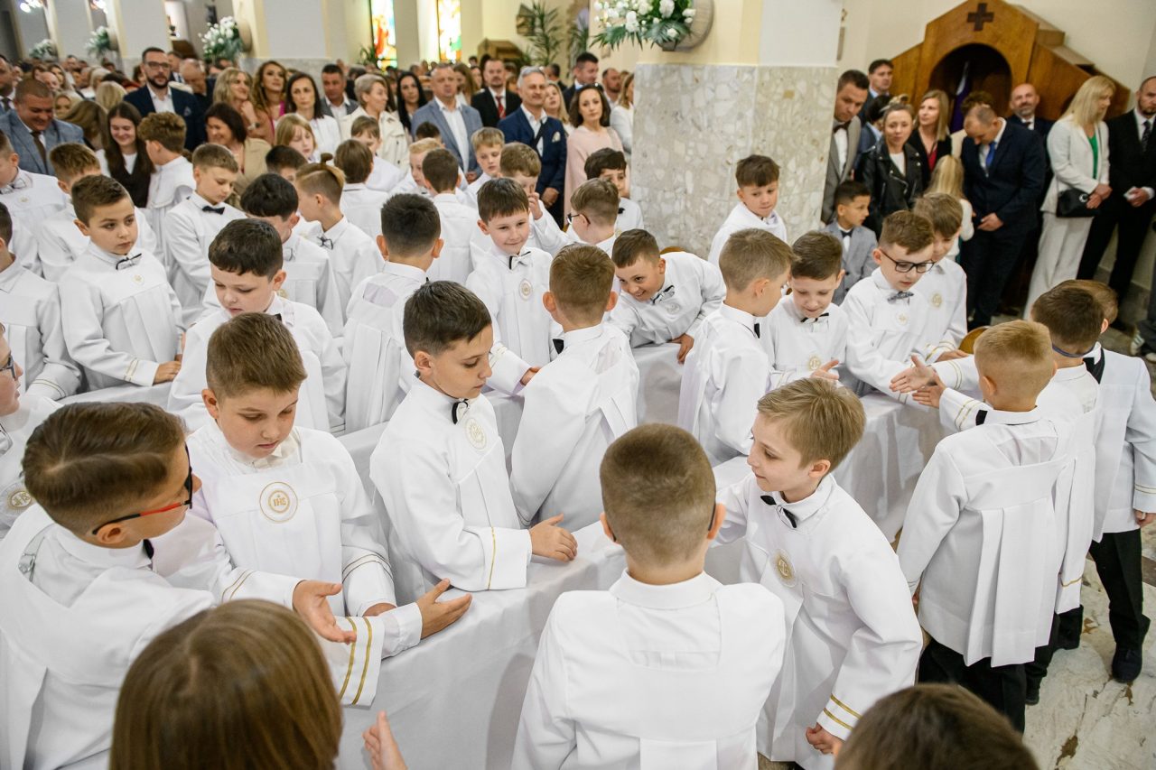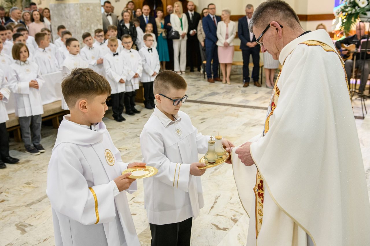 W tym wyjątkowym dniu, na placu przed kościołem ksiądz Proboszcz Zbigniew Góra w asyście ks. Pawła Serwańskiego i Ks. Karola Lenia, odpowiedzialnych za przygotowywanie dzieci do tego wydarzenia, witał  i błogosławił dzieci. Następnie błogosławieństwa udzielili rodzice.