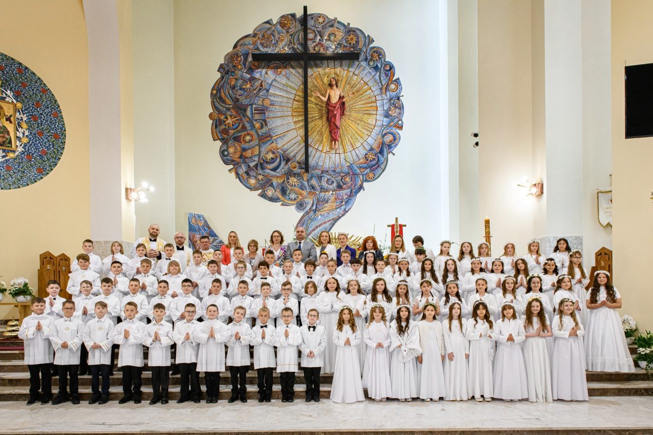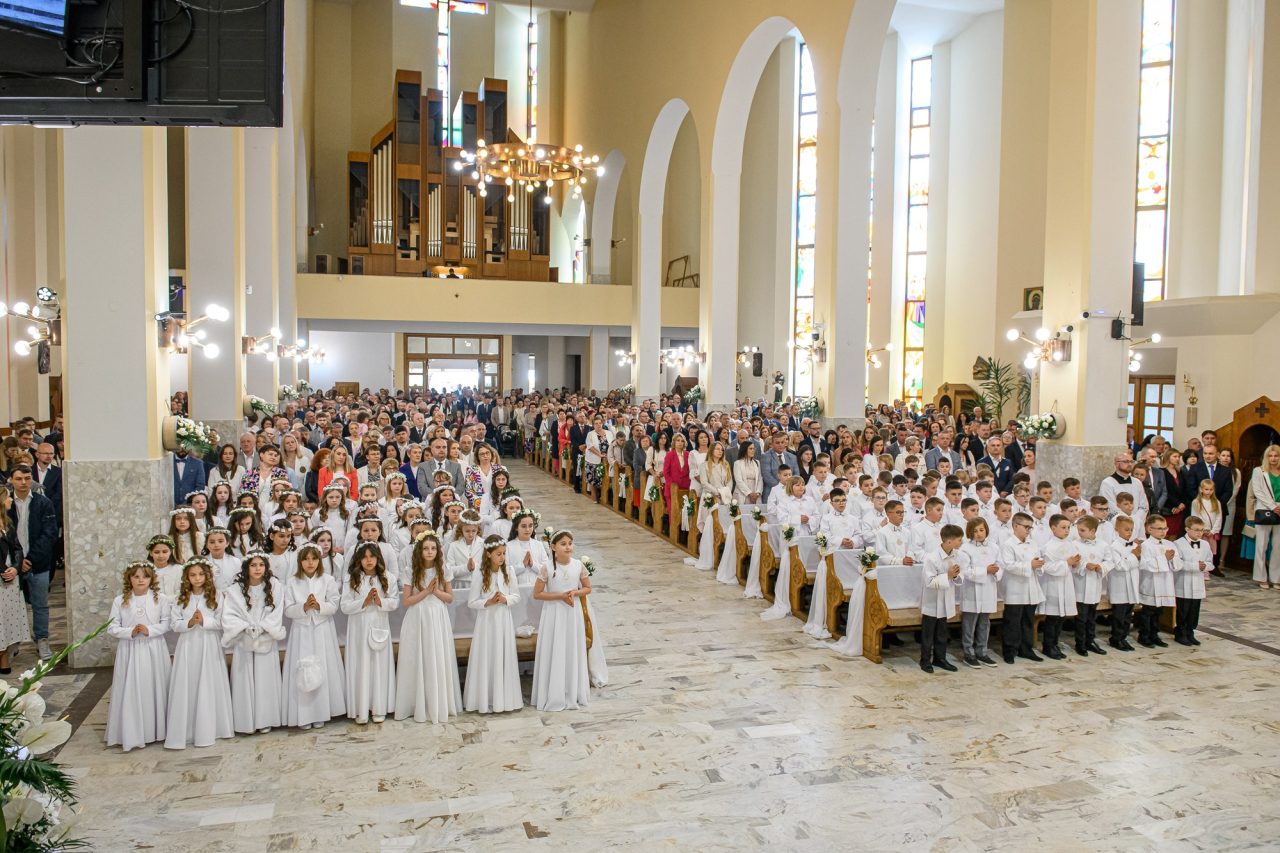 25. maja 2025 r., podczas Mszy Św. o godz. 11.30 przeżywaliśmy w naszej wspólnocie parafialnej uroczystość I Komunii Świętej. Tego dnia dzieci z klas 3a i 3b, ze Szkoły Podstawowej nr 4 i 9 w Sanoku, w liczbie 80. osób, po raz pierwszy przyjęły do swojego serca Pana Jezusa. Uroczystości te były poprzedzone Sakramentem Pokuty, do którego dzieci przystępowały z bijącym sercem dzień wcześniej.