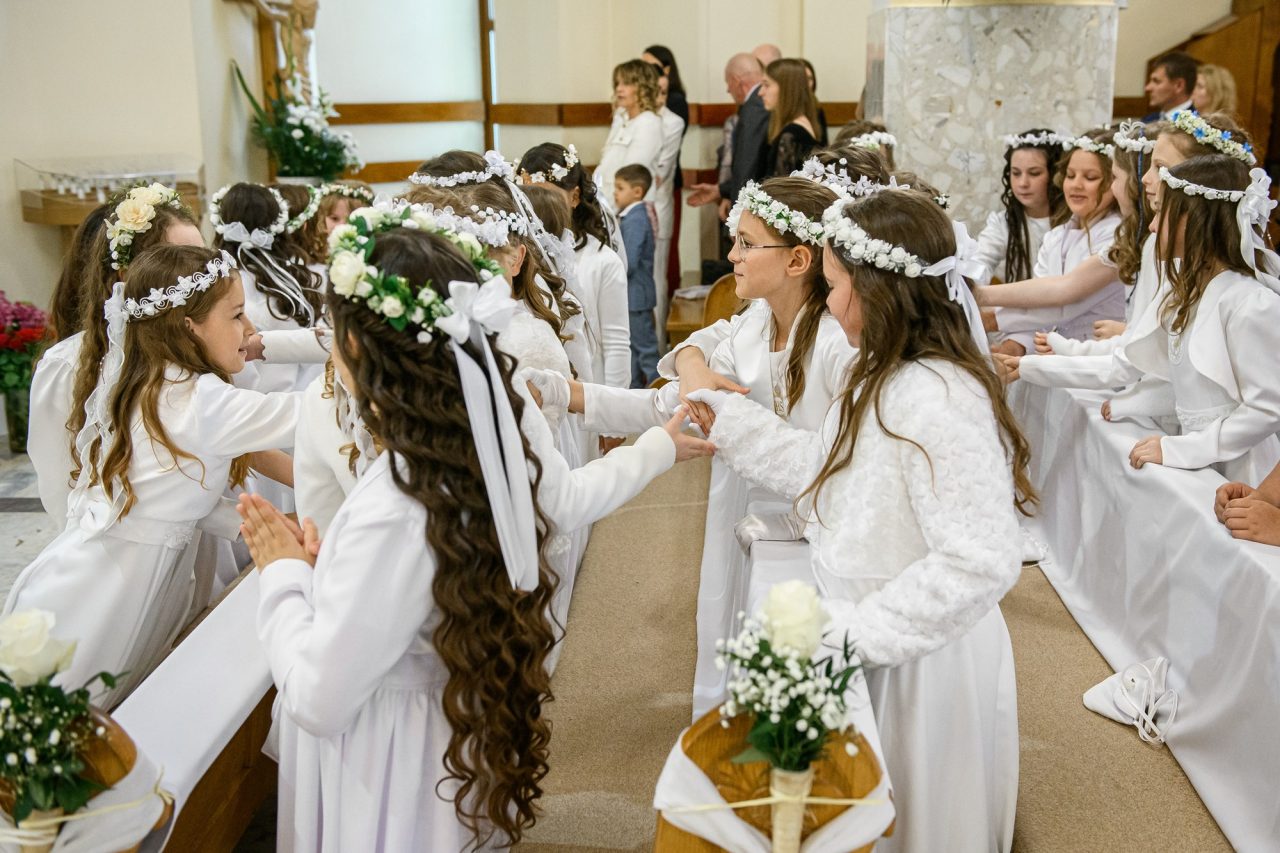 Cała uroczystość przebiegała w podniosłej atmosferze. Dzieci starały się pięknie i bardzo aktywnie uczestniczyć w całej Eucharystii. Moment, w którym przyjmowały pierwszy raz konsekrowaną Hostię – poważne, skupione, był niezwykle wzruszający a jednocześnie radosny.