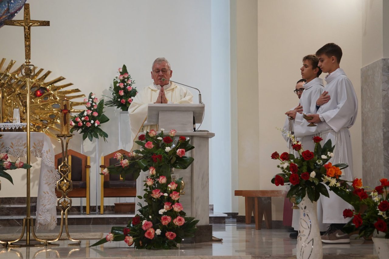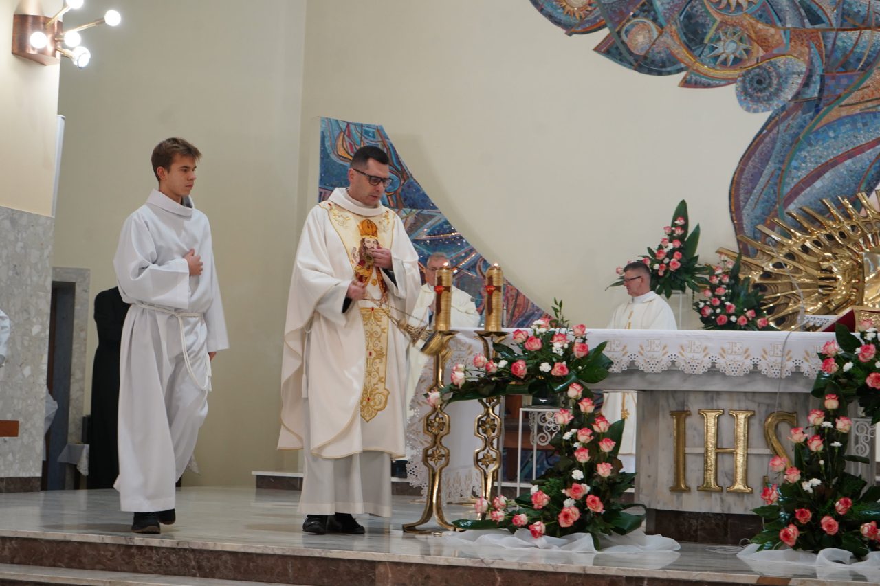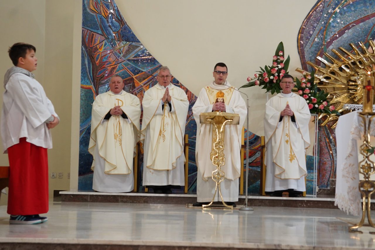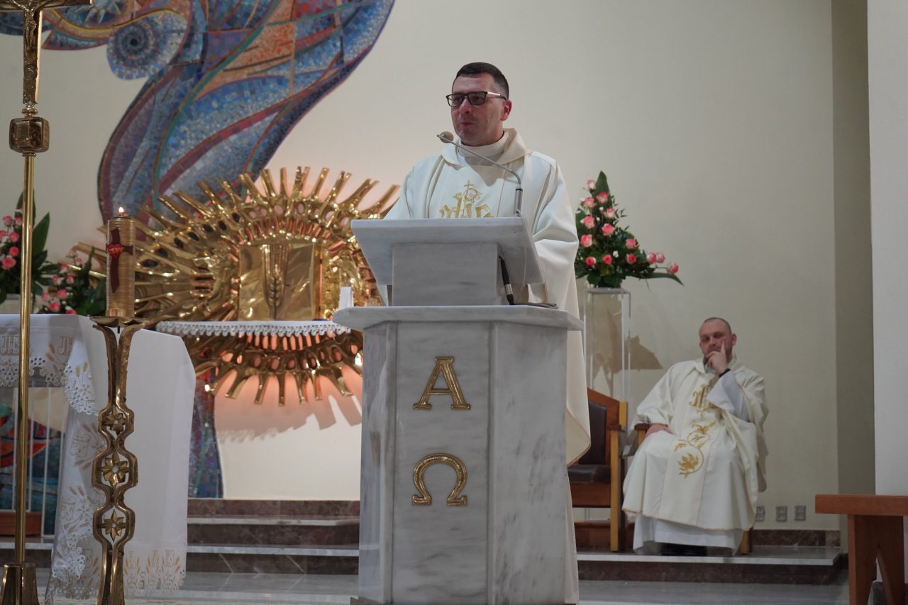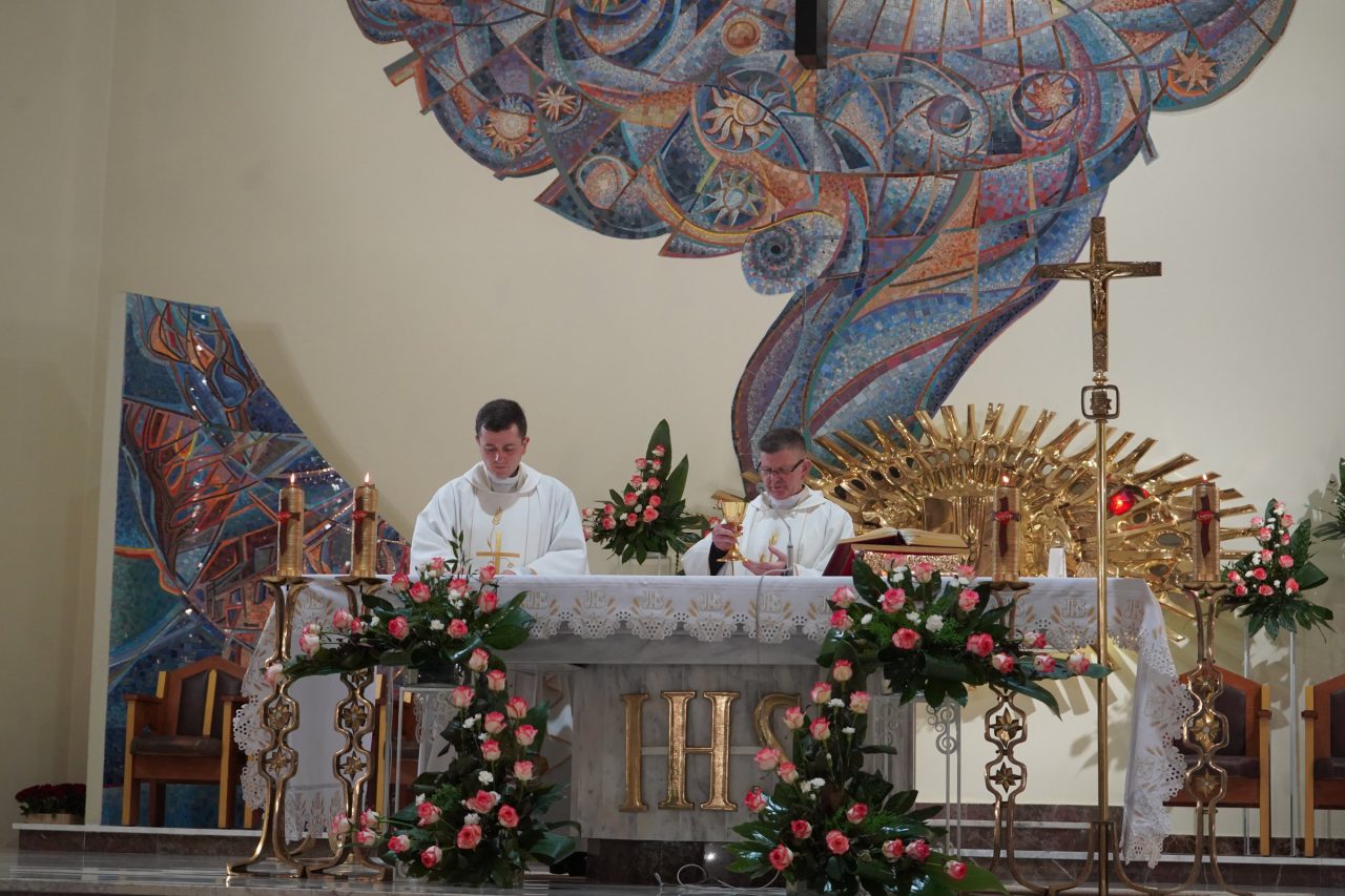 Puentą nauk rekolekcyjnych była uroczysta suma odpustowa w niedzielę 23 listopada 2025 r., podczas której dziękowaliśmy Panu Bogu za 21 lat istnienia naszej świątyni oraz za wszystkich ludzi, którzy kiedyś i aktualnie trudzą się, aby chwała Zmartwychwstałego Pana mogła nieustannie rozbrzmiewać we wszystkich rodzinach naszej parafii.