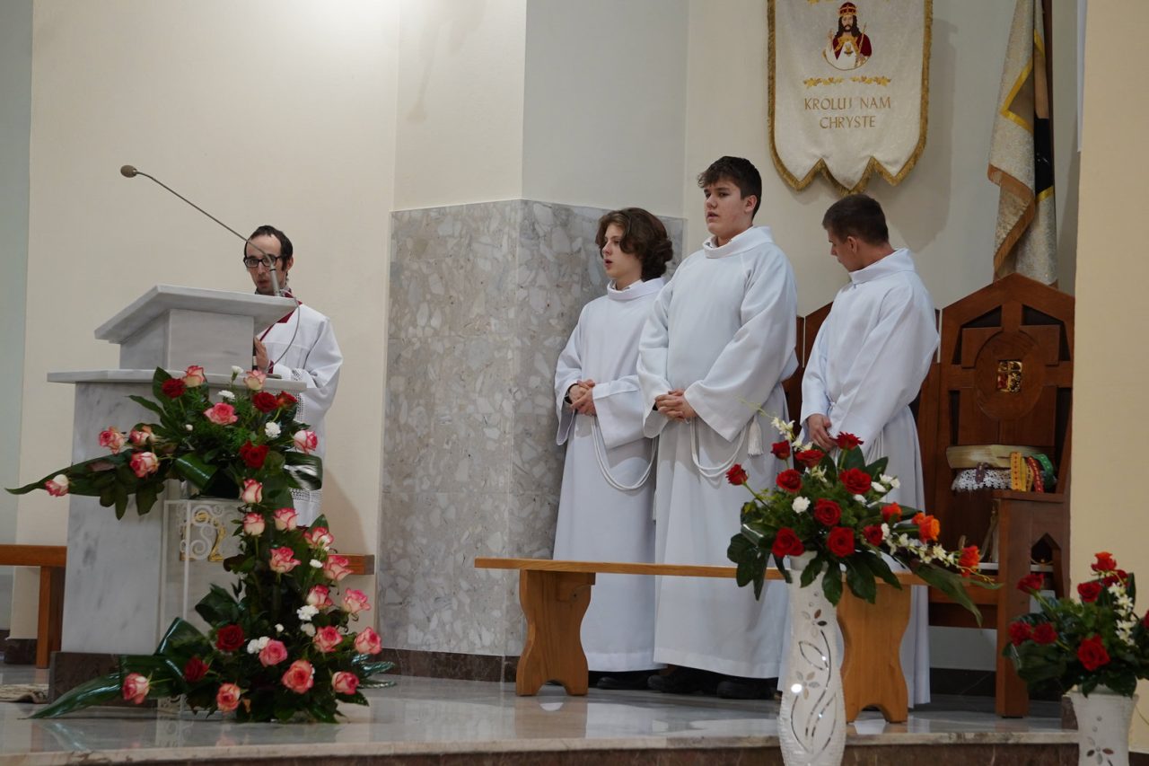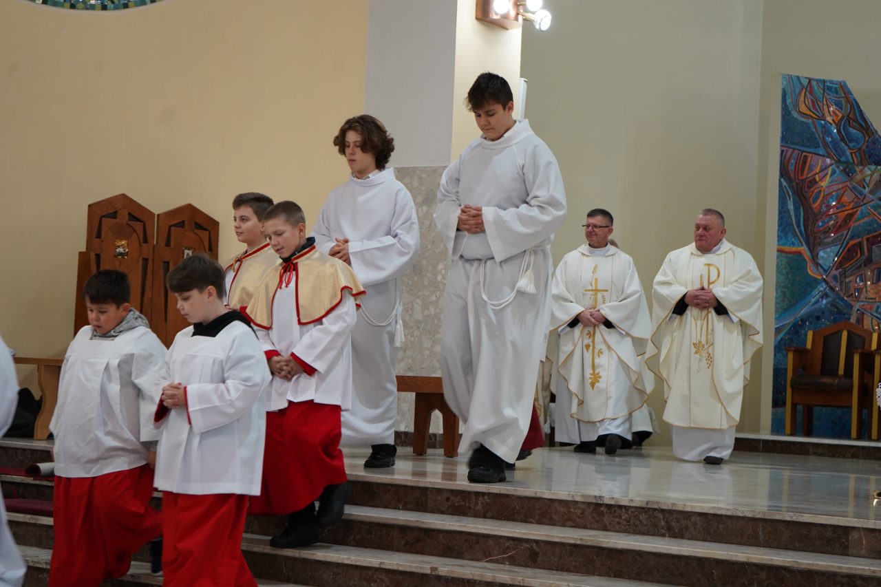 20 listopada 2025 r. Mszą św. o godz. 18:00 rozpoczęliśmy parafialne rekolekcje przed uroczystością Chrystusa Króla w naszej wspólnocie parafialnej. Duchowym przewodnikiem na drodze odkrywania prawdy o wierze, nadziei i miłości stał się dla nas ks. dr Kamil Szpilka, prefekt, wychowawca i wykładowca nauk filozoficznych w Wyższym Seminarium Duchownym w Przemyślu. Podczas nauk rekolekcyjnych, uczestnicy ćwiczeń duchowych mogli przypatrzeć się, jak w ich codziennym życiu realizują się w konkretnych sytuacjach cnoty teologalne, które nigdy nie powinny prowadzić do minimalistycznych i statycznych postaw, ale do działań zdominowanych przez ducha mądrej aktywności i odpowiedzialności. Wzorem dla nas stała się rodzina Machabeuszy, którzy oddali swoje życie w obronie wiary oraz sam Chrystus Król, który swoim życiem uczył, że prawdziwe królowanie, to gotowość nieustannego pochylania się nad losem drugiego człowieka, niesienie nadziei tam, gdzie panuje pesymizm życia, poprzez nie tylko wypowiadane słowa, lecz przede wszystkim towarzyszenie tym, którzy czekają na pomocną dłoń, która pomoże im powstać z bylejakości życia.