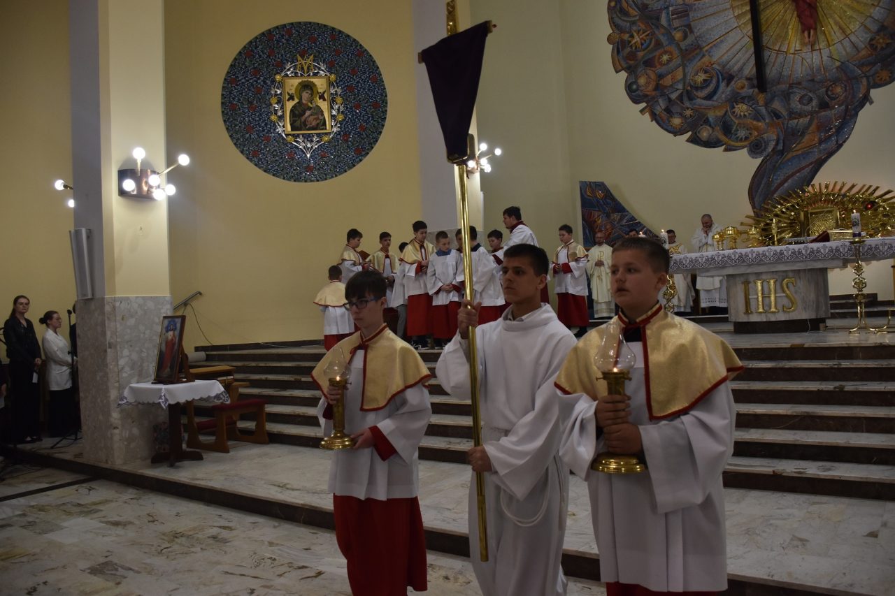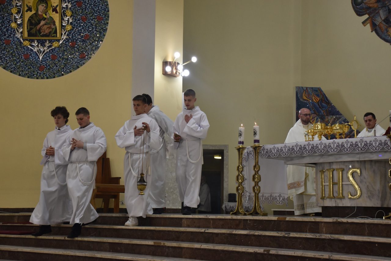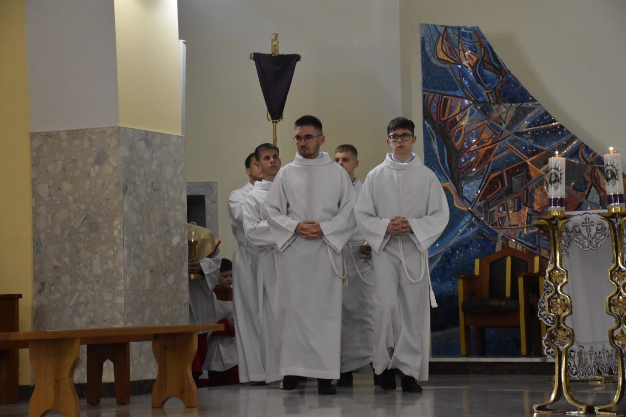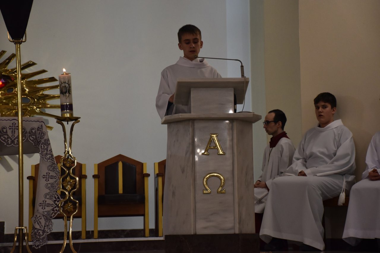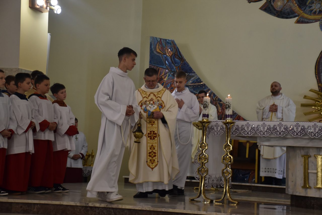 Wielki Czwartek jest liturgicznym dniem, kiedy Jezus zgromadzony ze swoimi uczniami w Wieczerniku ustanowił sakramenty Eucharystii i kapłaństwa. Stąd też, po uroczystej procesji wejścia, rozpoczynającej Najświętszą Ofiarę, nasi Kapłani zostali obdarzeni życzeniami od najmłodszych parafian oraz przedstawicieli wspólnot parafialnych, będącymi wyrazem wdzięczności za posługę duszpasterską wobec wspólnoty Chrystusa Króla w Sanoku. W tym dniu, Słowo Boże skierował do nas ks. Paweł Serwański, który uświadomił nam prawdę, że Eucharystia jest ucztą miłości, a zaproszeni na nią powinni wyrażać swoim życiem wdzięczność Zbawicielowi, że pozostał z nami i pozostawił nam pokarm, na drogę ku wieczności.