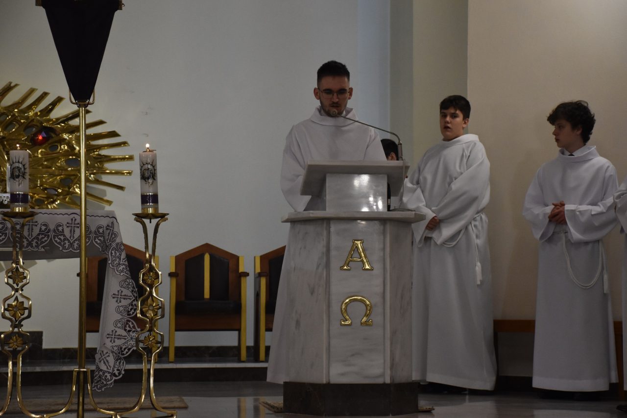 17 kwietnia 2025 r., Mszą św. Wieczerzy Pańskiej o godz. 18:00, pod przewodnictwem ks. Proboszcza Zbigniewa Góry, rozpoczęliśmy w naszej wspólnocie parafialnej obchody świętego Triduum Paschalnego, w czasie którego wspominaliśmy mękę, śmierć i zmartwychwstanie Jezusa Chrystusa.