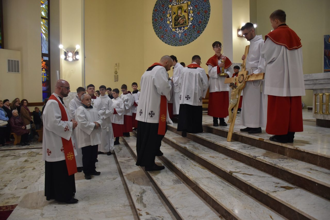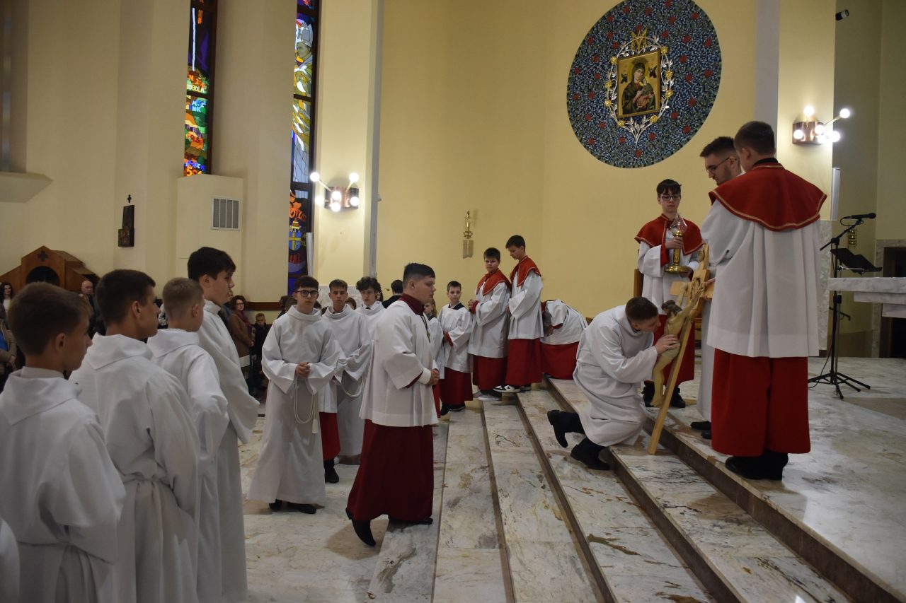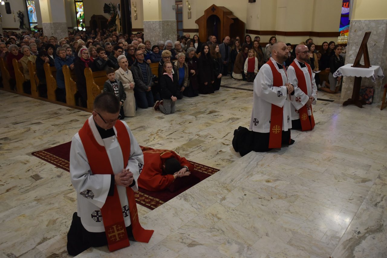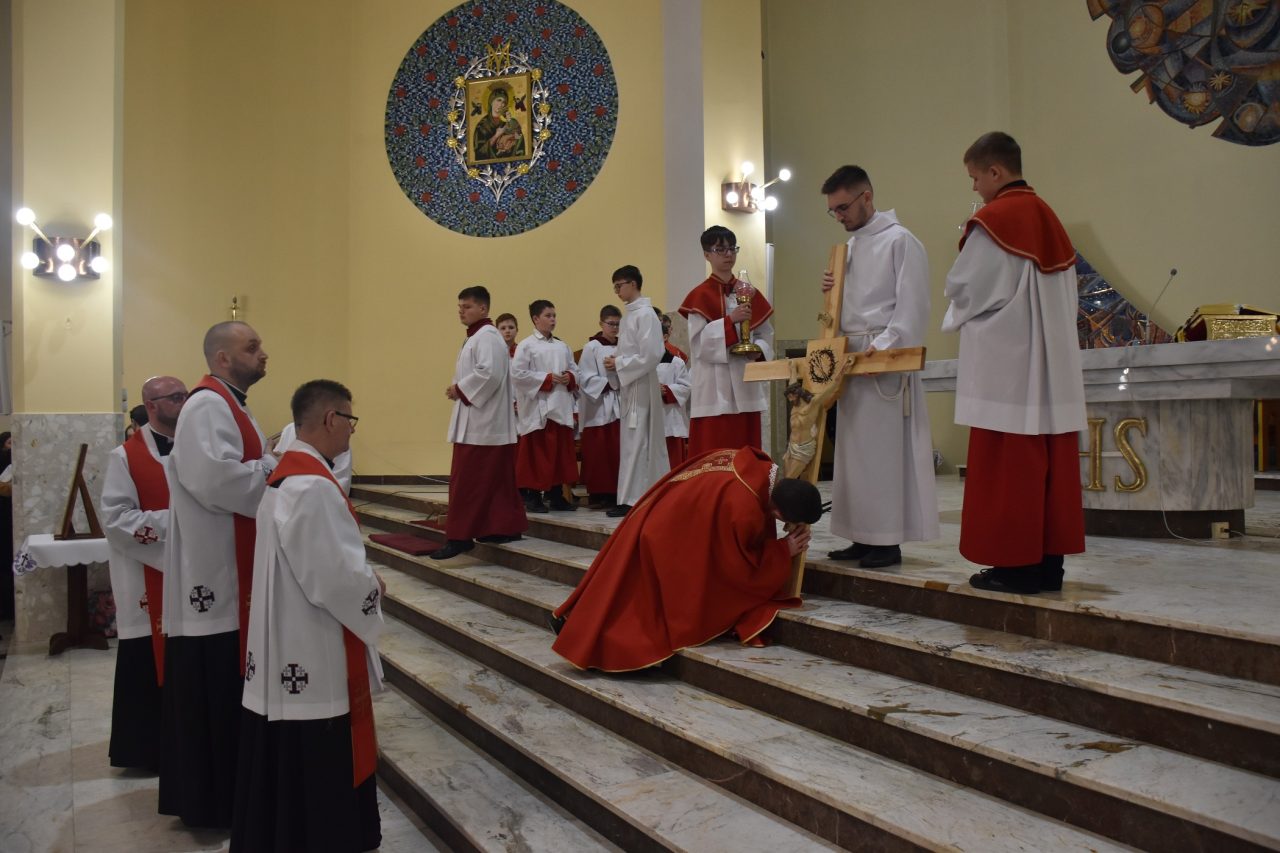 Wielki Piątek, to dzień ofiary krzyżowej naszego Pana Jezusa Chrystusa. W tym dniu, w naszej wspólnocie parafialnej przeżywaliśmy Liturgię Męki Pańskiej, której przewodniczył ksiądz wikariusz Łukasz Staszewski. W ciszy i skupieniu celebrans wraz z asystą wyszedł przed ołtarz, aby w geście prostracji wyrazić uniżenie i poddanie wobec Boga oraz uświadomić sobie i zebranej wspólnocie wiernych człowieczą małość i bezsilność. Jest to również symbol człowieka, który jest prochem, i który potrzebuje zbawienia oraz wyraz szacunku wobec Chrystusa, który oddał życie na krzyżu za grzechy ludzkości.