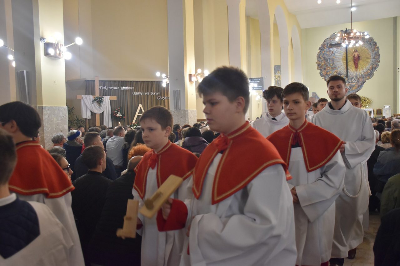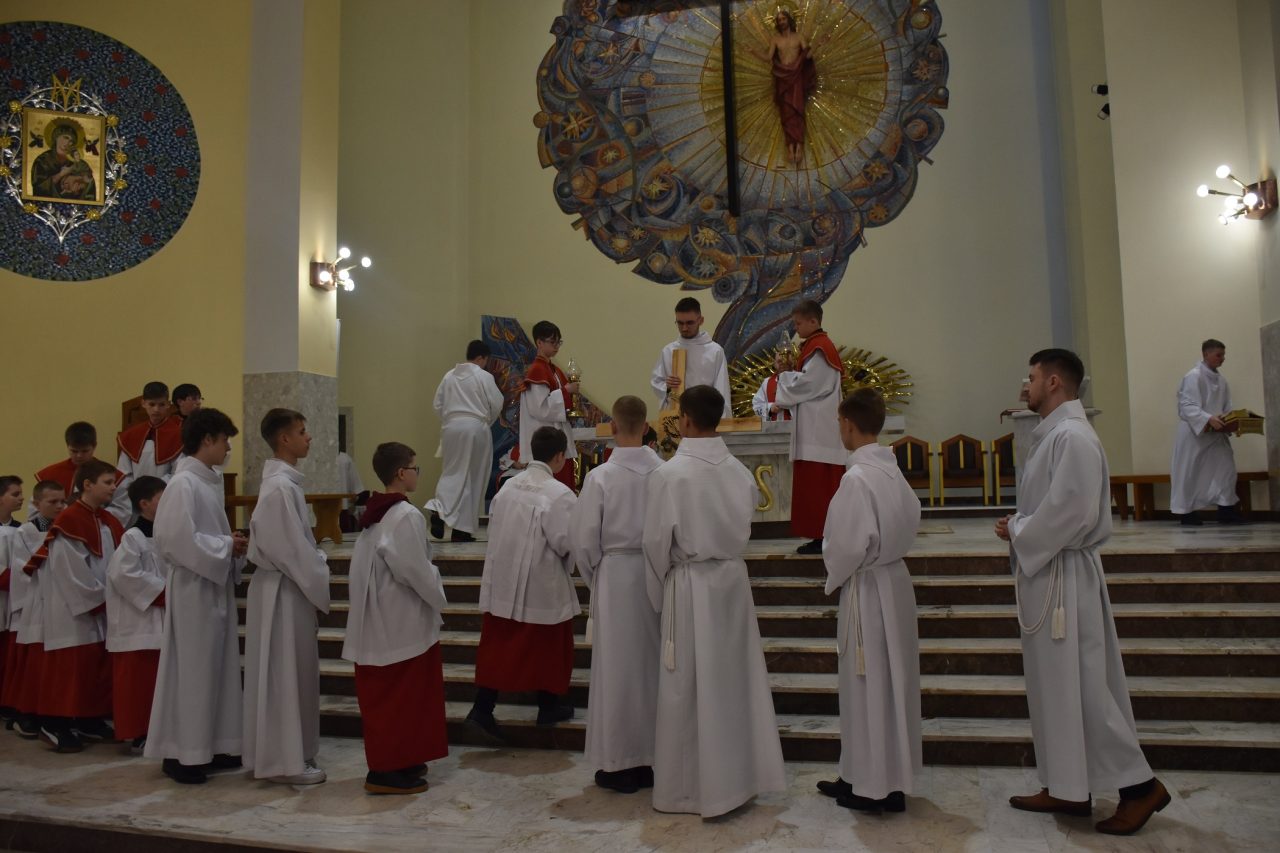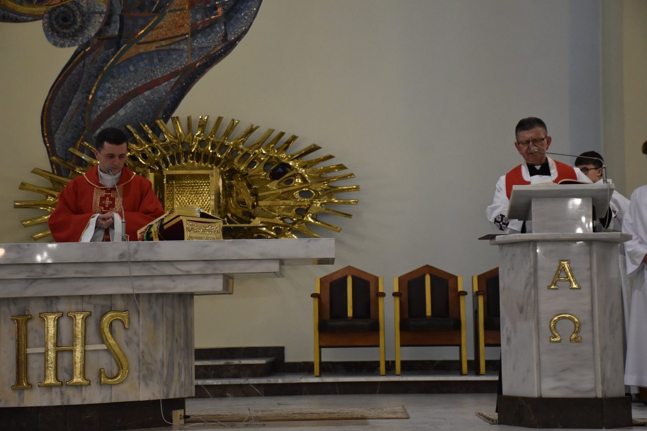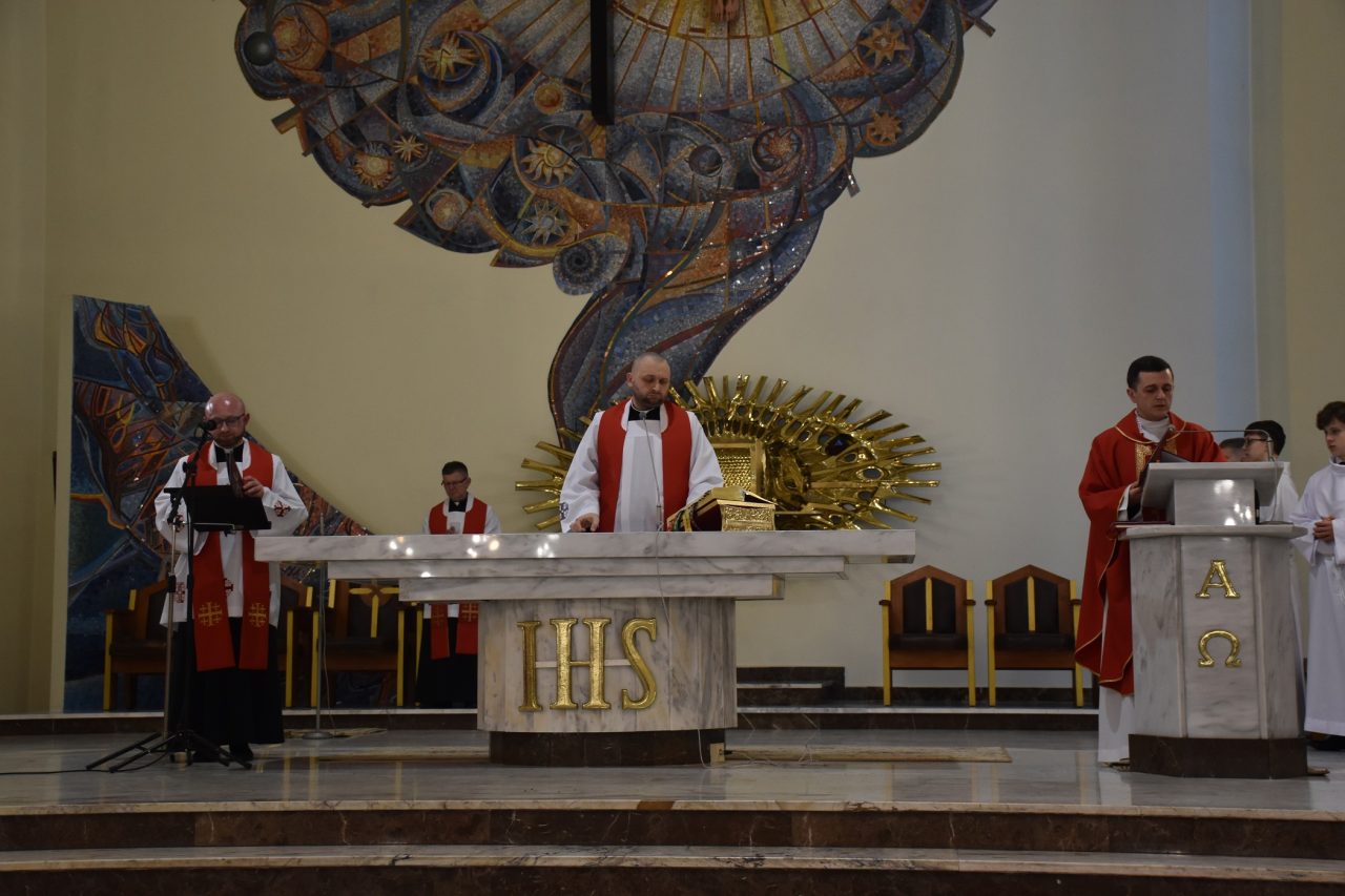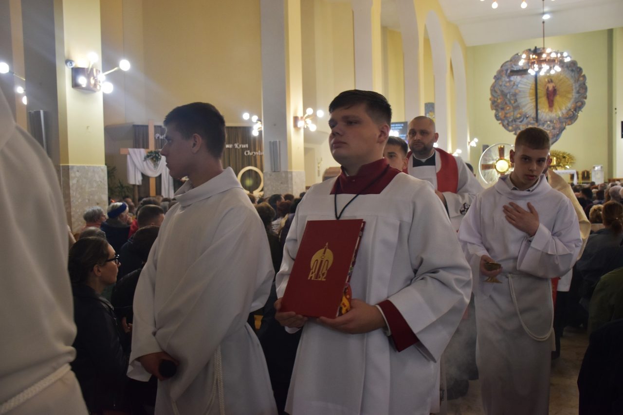 Następnie, księża wikariusze naszej parafii odśpiewali Mękę Pańską, po której nastąpiło kazanie ks. Łukasza, uświadamiającego nam sens ofiary krzyżowej, która każdego dnia jest ponawiana w sposób bezkrwawy podczas Mszy świętej, a która otwiera nam drogę do nieba, stając się przebłaganiem za nasze grzechy wobec Boga Ojca.