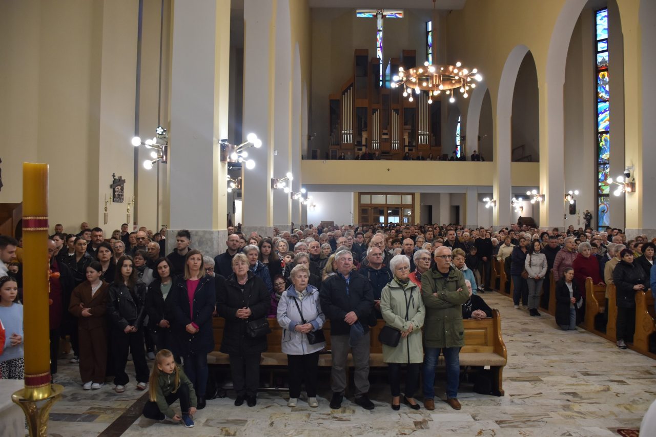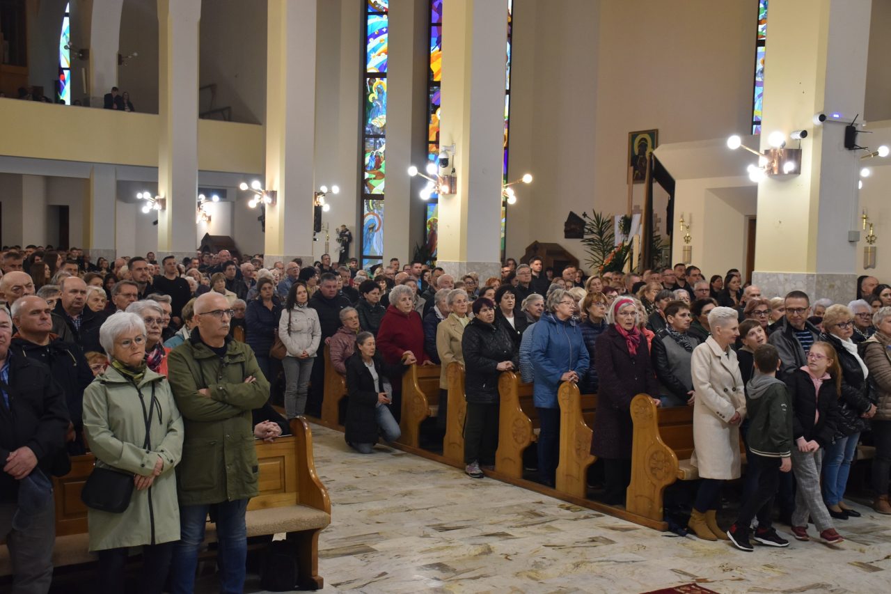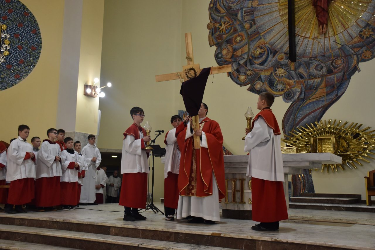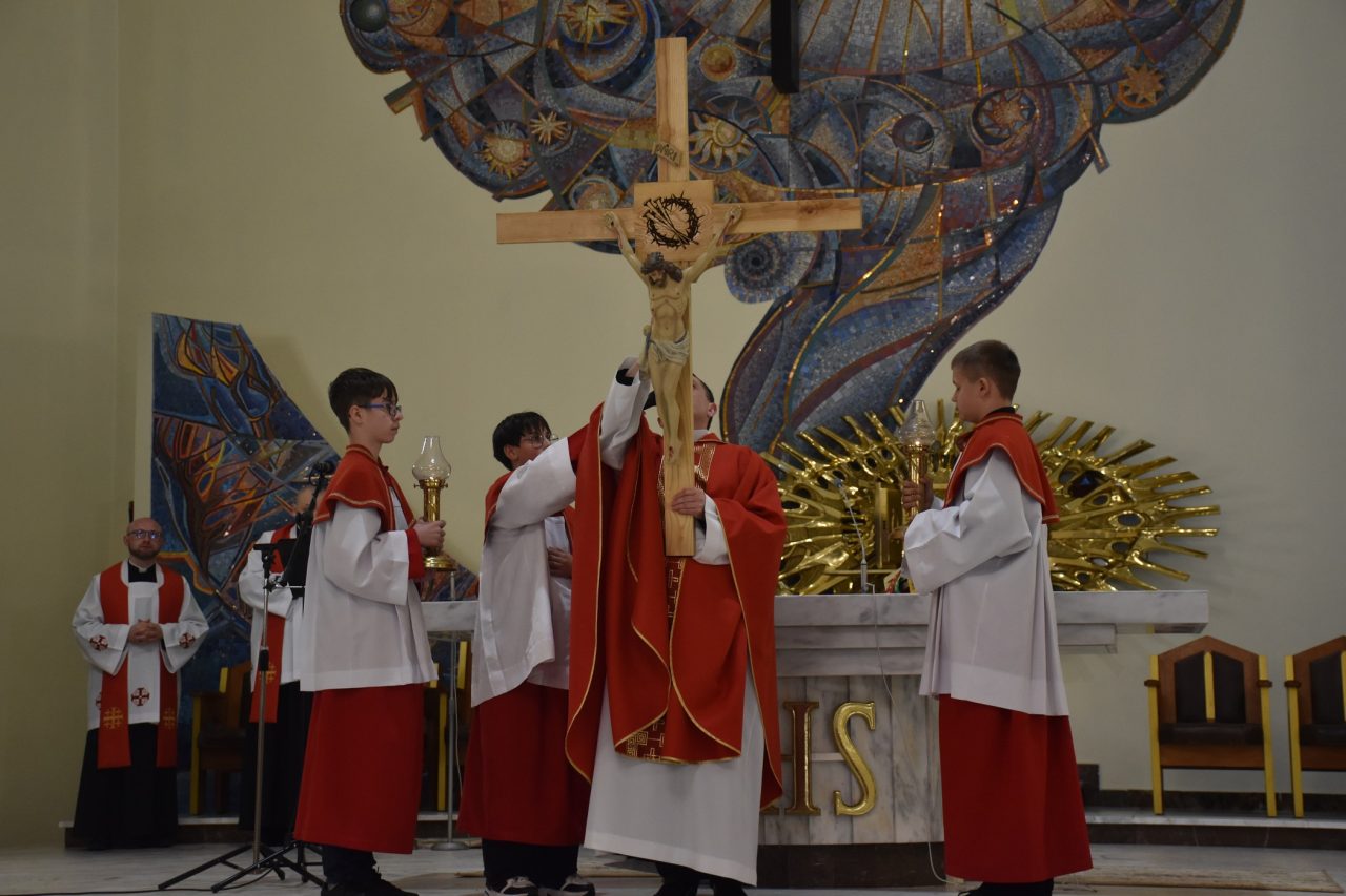 Centralnym wydarzeniem liturgii wielkopiątkowej była adoracja Krzyża. Zasłonięty fioletowym suknem Krzyż, uroczyście wniesiony przez Liturgiczną Służbę Ołtarza, został odsłonięty przez celebransa, po trzykrotnym śpiewie: „Oto drzewo Krzyża, na którym zawisło zbawienie świata” i odpowiedzi wiernych: „Pójdźmy z pokłonem”. Po zakończonej liturgii, Krzyż został udostępniony wiernym, aby każdy mógł wyrazić swoją wdzięczność Chrystusowi, poprzez znak adoracji.