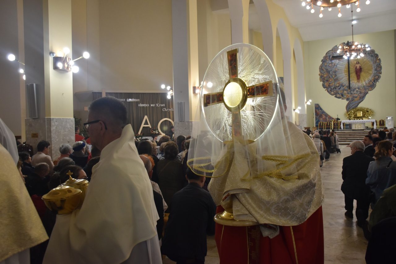 W dalszej części liturgii, z kaplicy zwanej „Ciemnicą”, został przeniesiony Najświętszy Sakrament i udzielona wiernym Komunia święta.